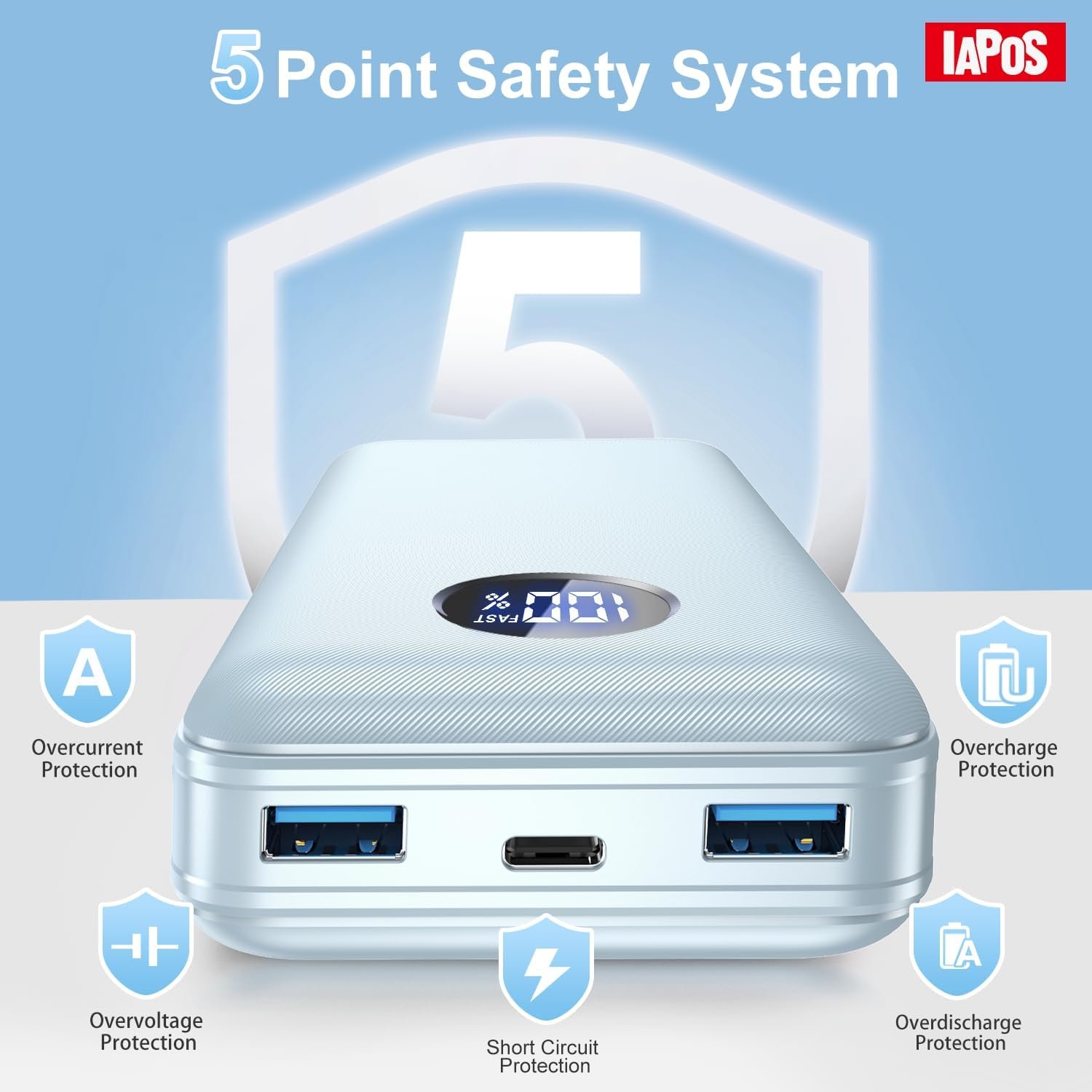 [Fortress-Like Security]: IAPOS phone battery bank has implemented state-of-the-art security protocols, including overcharge, overcurrent, and short-circuit protection. Your device is cocooned in safety while you indulge in effortless charging luxury.