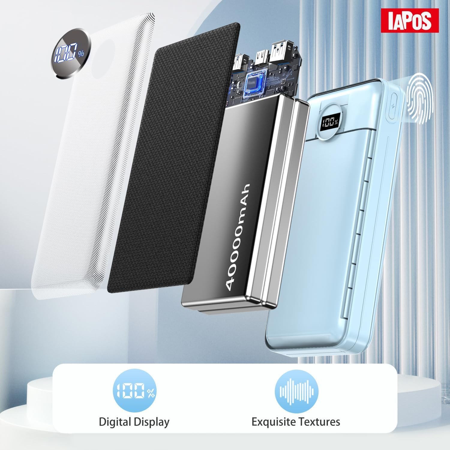 [Real-Time Power Monitoring]: IAPOS portable power bank is equipped with a high-precision intelligent LED digital display that accurately reflects the remaining battery percentage, ensuring you are always in control. *(Note: The buttons of powerbank are for monitoring the remaining power in standby mode only)