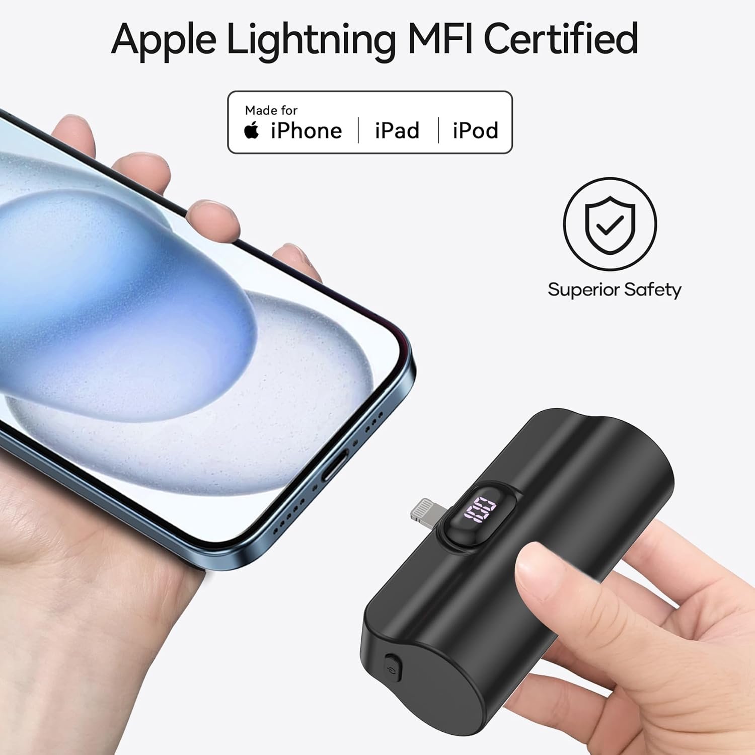Portable Charger for iPhone, Small Portable Charger with Built-in MFI Certified 12W Lightning Port, 5000mAh Mini Power Bank Works with iPhone 14 and iPhone 13 Series (Black)