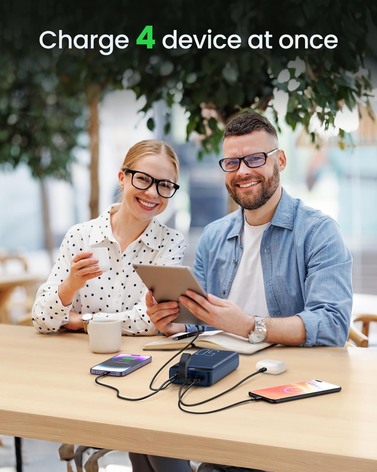 Charging 4 devices at once—1 USB C & 3 USB Output: The Charging bank bulit in 1 USB Type C Output/Input & 3 USB Output charging ports. Simultaneously charging for 4 devices such as phone, tablet, headphones and more. You can share the large portable battery with your families and friends( Not suitable for Laptop)