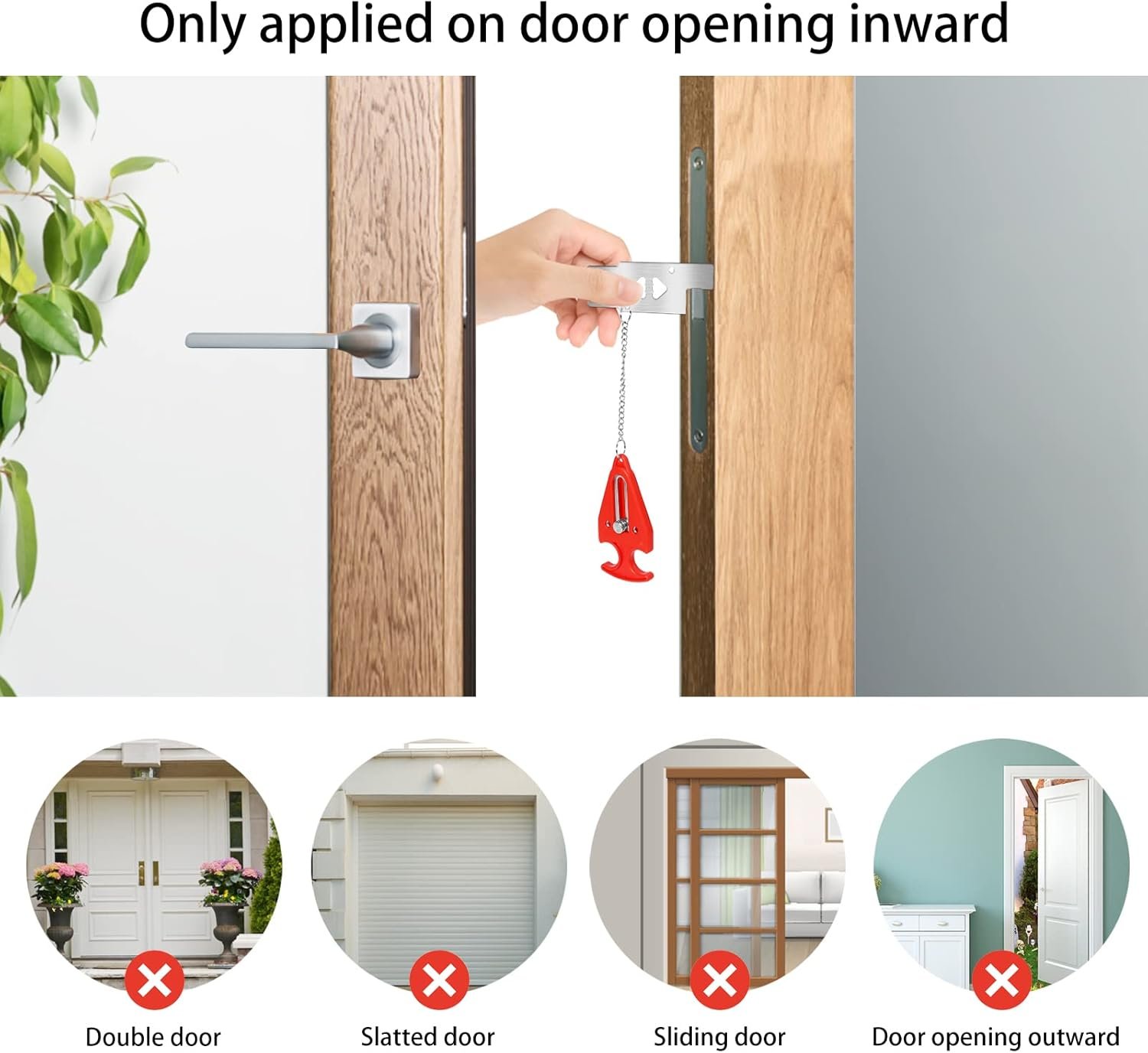 🔐Application scenario: The function of the two kinds of door stoppers is only limited to the door that opens inward, please note that the door cannot be opened outside