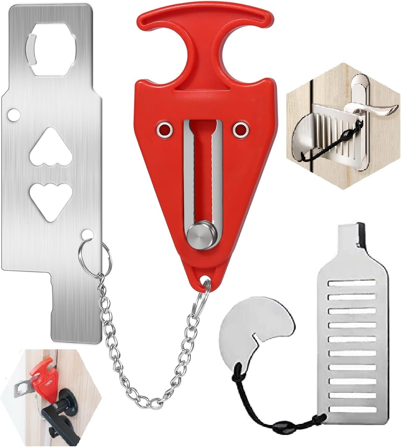 🔐Safety package: Contains two kinds of portable door stoppers, an economical safety guarantee