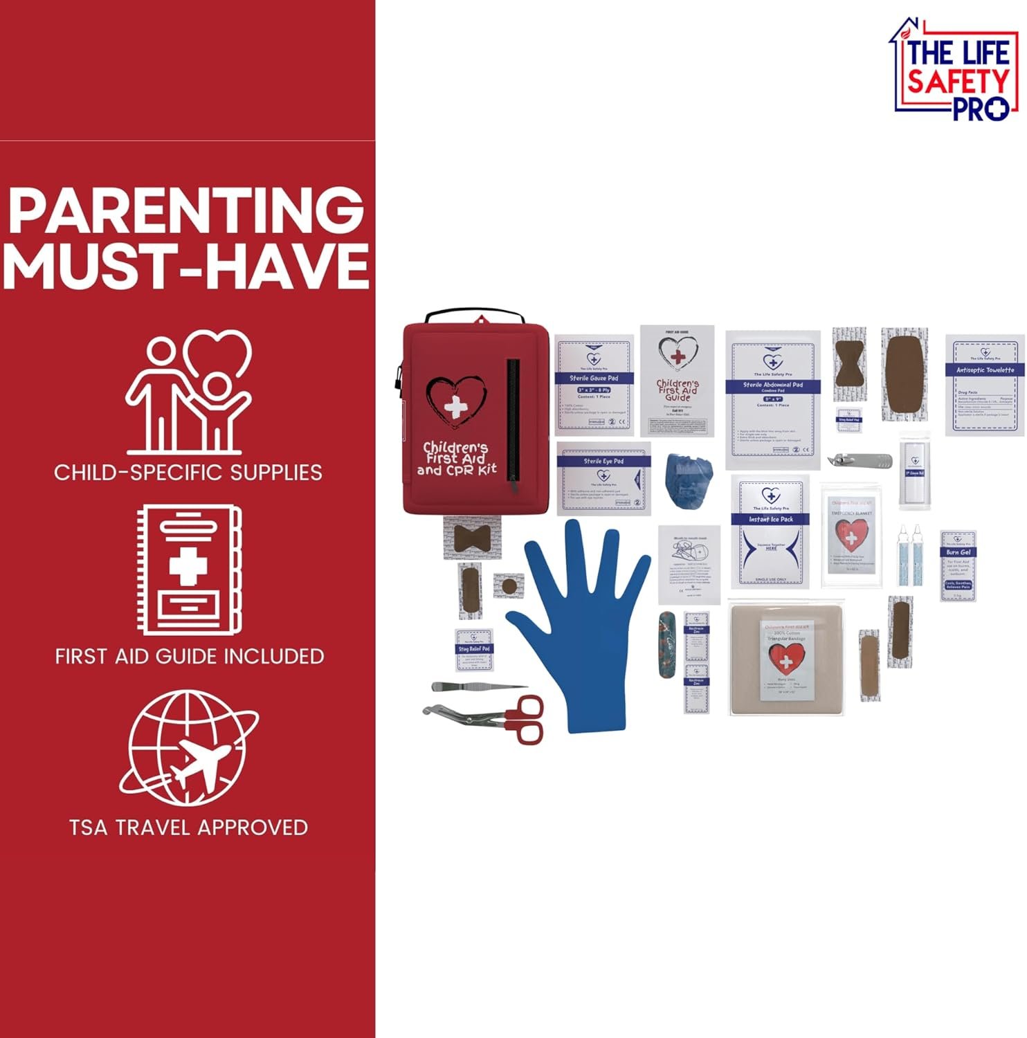 Portable First Aid Kit for Kids with CPR Shield – Ideal for Home, Car, School, Camping, and as a Travel First aid kit. Latex-Free Bandages – Children First Aid Guide by The Life Safety Pro