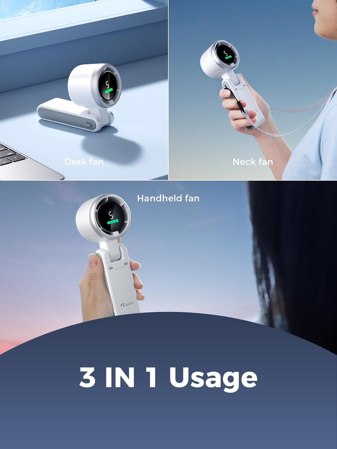 Unique Appearance – The ultra-small foldable body design and ultra-light weight of 190 grams allow you to easily put it in your pocket or bag, saying goodbye to bulky traditional fans and easily achieving mobile cooling. The pocket fan also comes with an anti-lost lanyard, so no matter where you go, this handheld portable turbo fan ensures you’ll stay comfortable all day long.