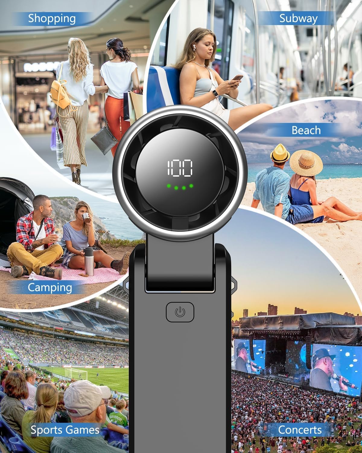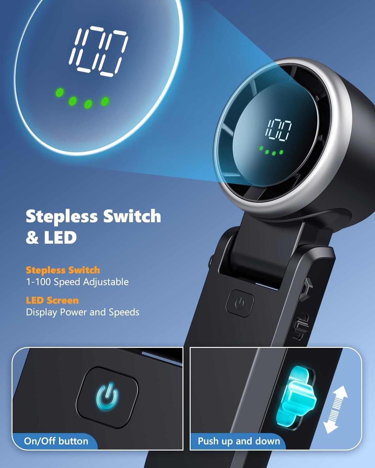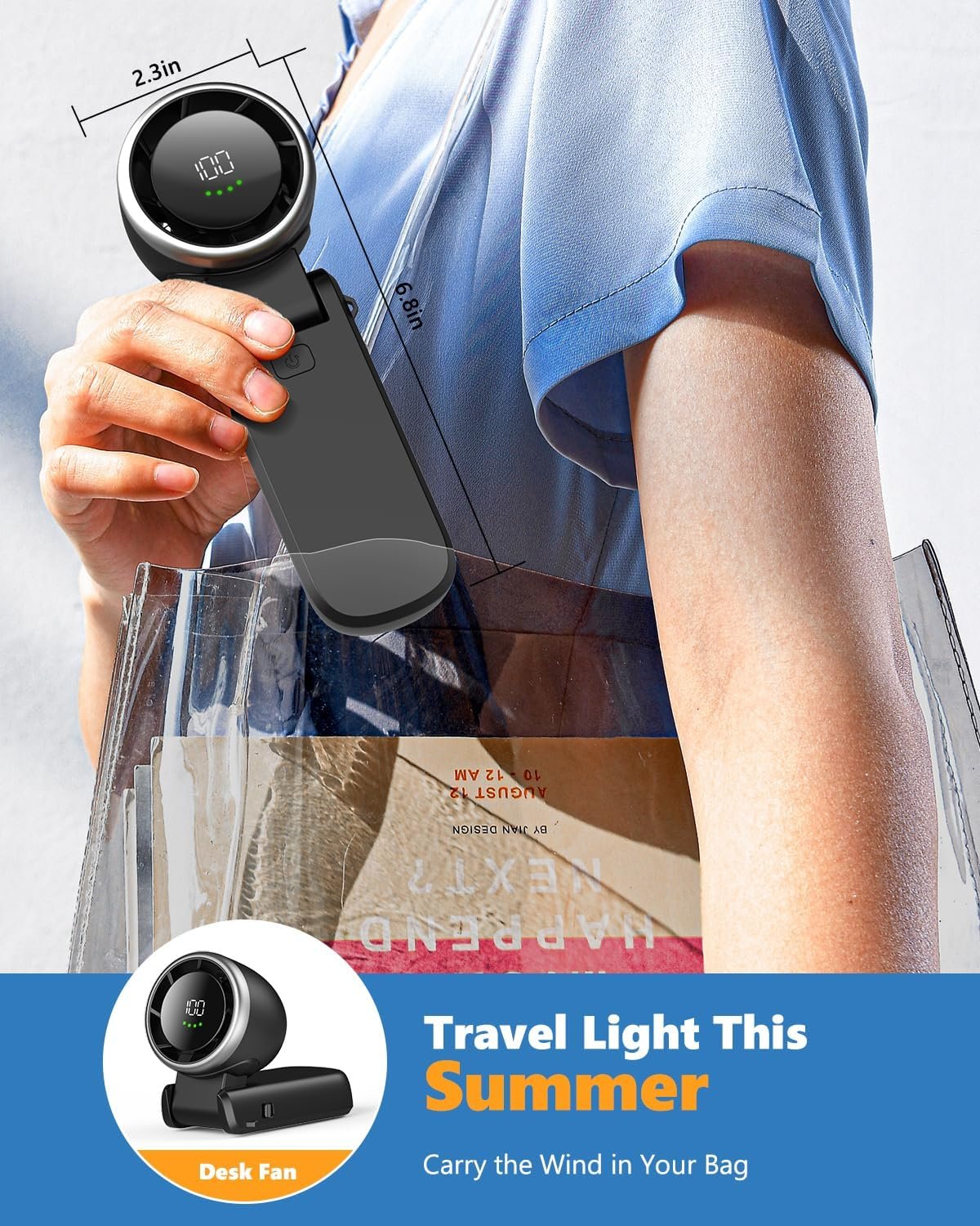 【LED Power Reminder】- This pocket fan for travel is equipped with a high-definition digital display screen, which can show the current wind speed and remaining battery power, so you no longer need to worry about the remaining power of the fan. When the battery of this mini fan is low, you can arrange for charging in advance, ensuring a cool companion on every trip.