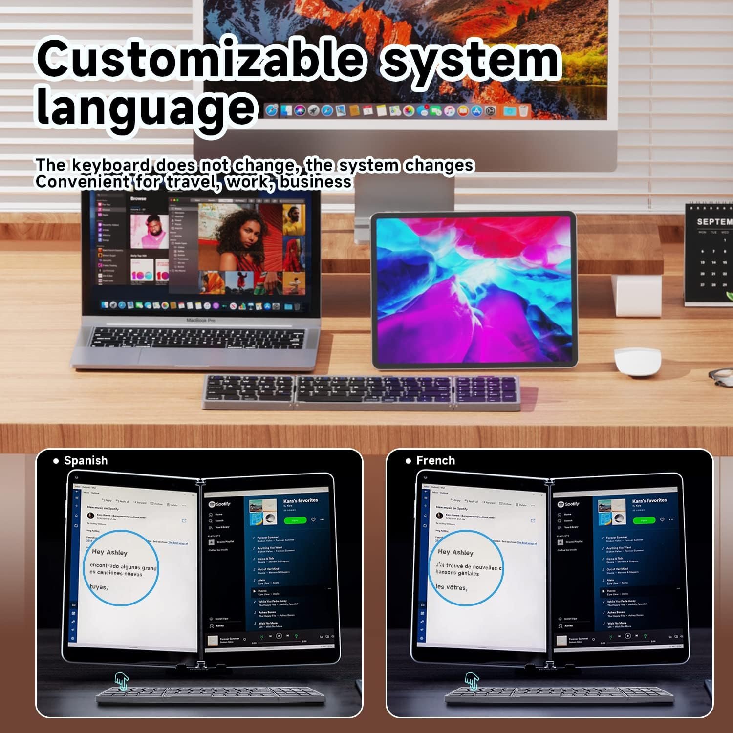 【Portable Keyboard for Laptop Compatible with】iOS/Windows/Android/MacOS/HMS The Bluetooth Laptop keyboard works perfectly with mobile phones,tablets,laptops,desktops with iOS,Android and Windows operating systems and provides stable and fast Bluetooth connectivity. With just one touch, the Bluetooth Travel Keyboard switches instantly between the registered devices, making it very convenient to use even on your lap.