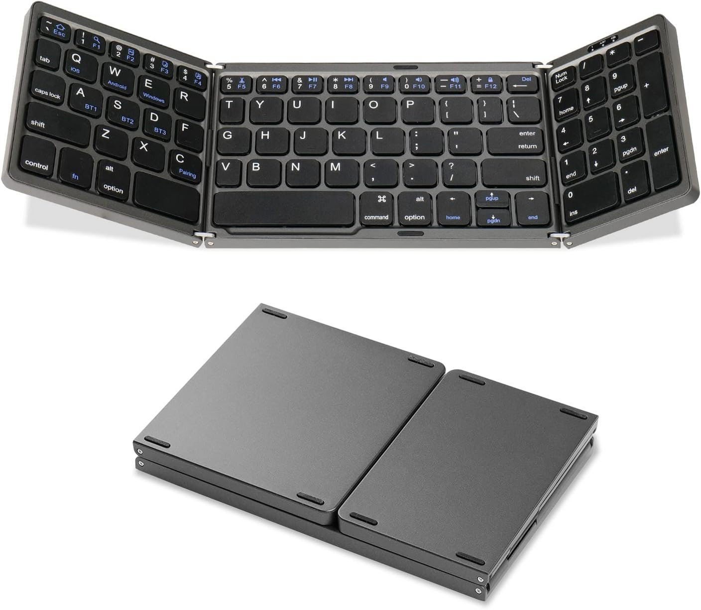 【Portable Keyboard with Number Pad 】Ergonomic,Foldable Keyboard Bluetooth in 81 key format with number keyboard.The touch buttons on the Portable Travel keyboard are designed with matte finish,providing a comfortable feeling.Be Careful;Folding or opening,there may be a slight noise when connecting,but keeping the connecting screws too tight can affect the service life and changes if folded or opened for a long time.Please be sure to contact us for any usage issues!Don’t use it without understanding!
