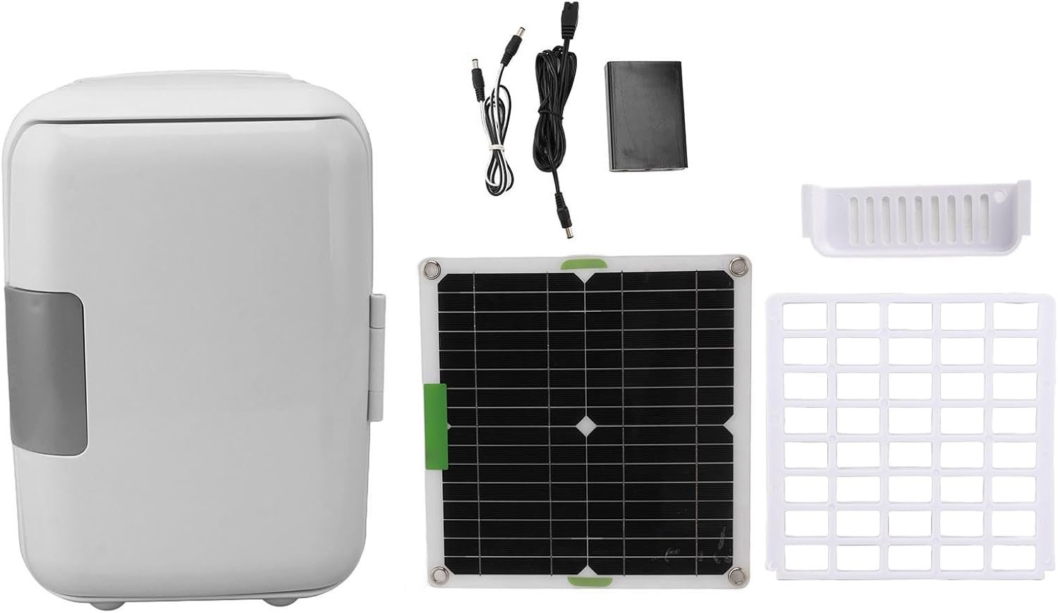 Portable Mini Fridge, 50W Monocrystalline Solar Panel DC18V Solar Powered Car Refrigerator, Fast Cooling Compact Freezer with Battery Box Connector Cable for Camping Outdoor Activi