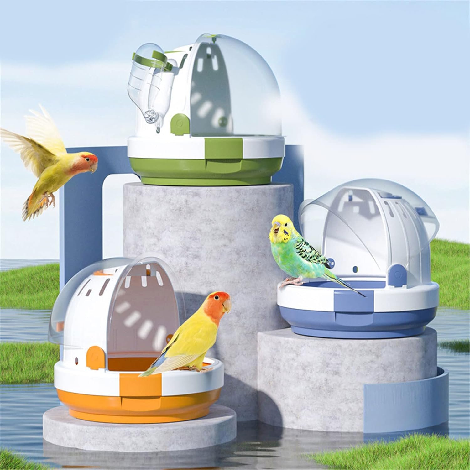 Portable Parrots Carry Case Cage for Travel&Outdoor Safe Door Lock Small Pet Accessories Outdoor Bag Lightweight bird carry case travel bag flightFeatures:Clear window for great scenery- view while travel and hiking.Fit for most of small birds parrots cockatiel parakeets and small animals.Novelty- with safety door lock. Easy to carry with convenient handle.Designed with a 60ml-water-dispenser for your bird. Three beautiful colors- to chooseSpecifications:Size: Approx.18x16cm/7.09×6.30inchColor: Orange, Green, Blue(optional)Package Includes:1x Bird Note: 1.Please allow 1-2cm errors due to manual measurement, make sure that you do not mind before you order. 2.Due to the differences between different monitors, the picture may not reflect the actual color of the item.