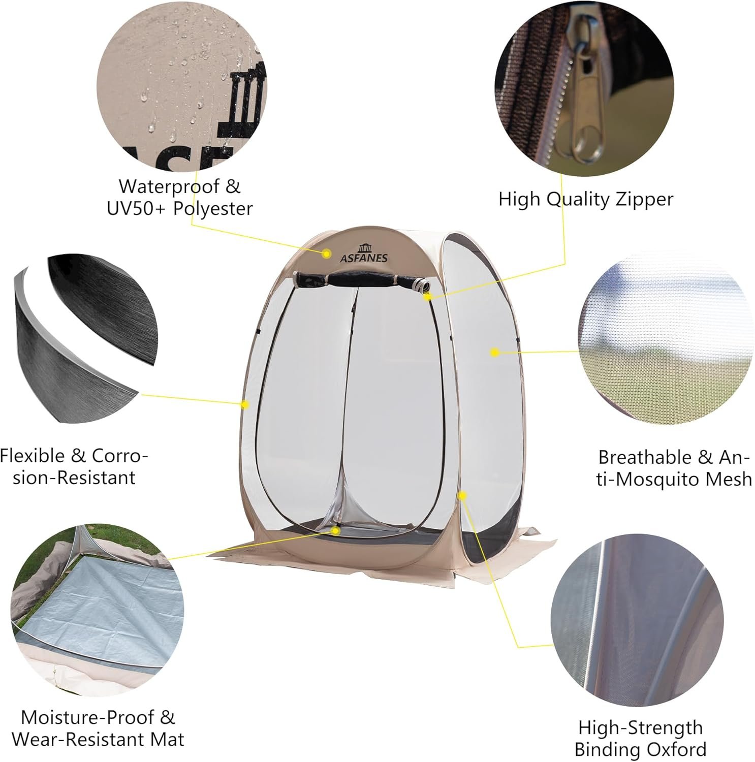 🏡【Upgraded frame】: We utilize a thick and flat wire-steel as the material of pole to support the pop up gazebo,ensuring it won’t easily break or be blown down by wind. This size is specially made for provide a separate space for one person.