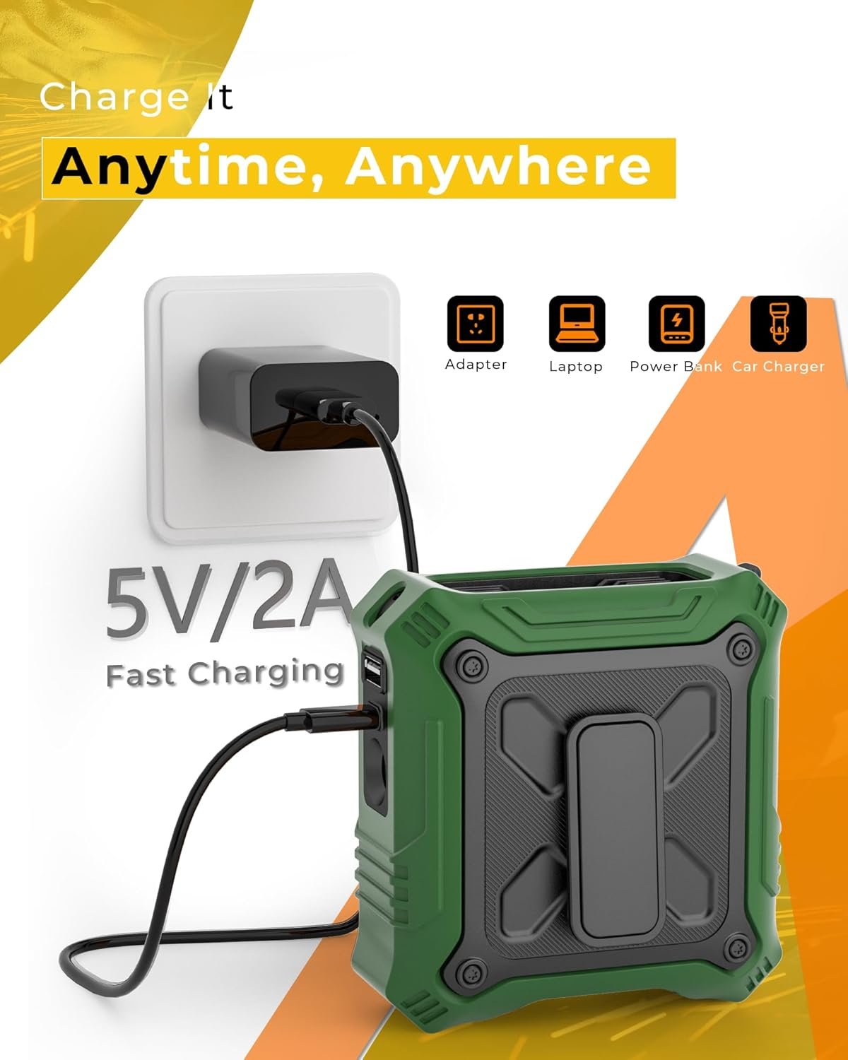 POWER UP ANYWHERE: This fan features both USB-C and USB-A ports, making it easy to charge your phone no matter where you are. Whether at home, in the office, or on the road, you can conveniently power up using a USB charger, laptop, computer, or car charger. Stay charged and ready for anything with this portable powerhouse!