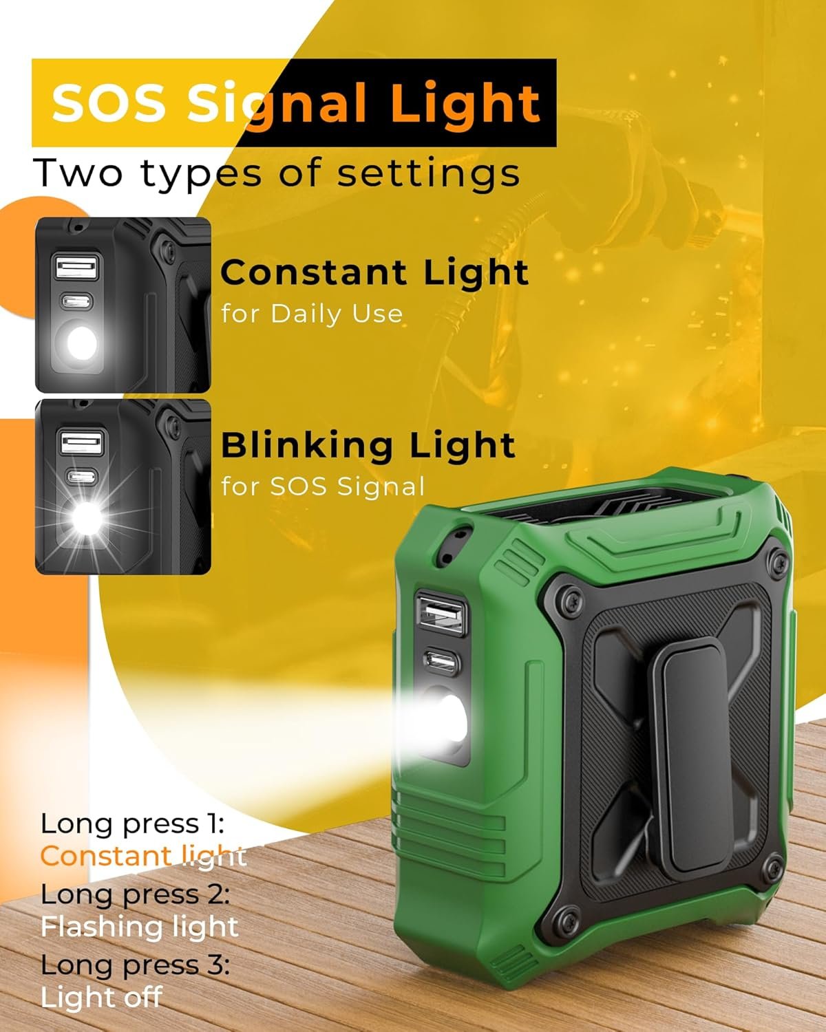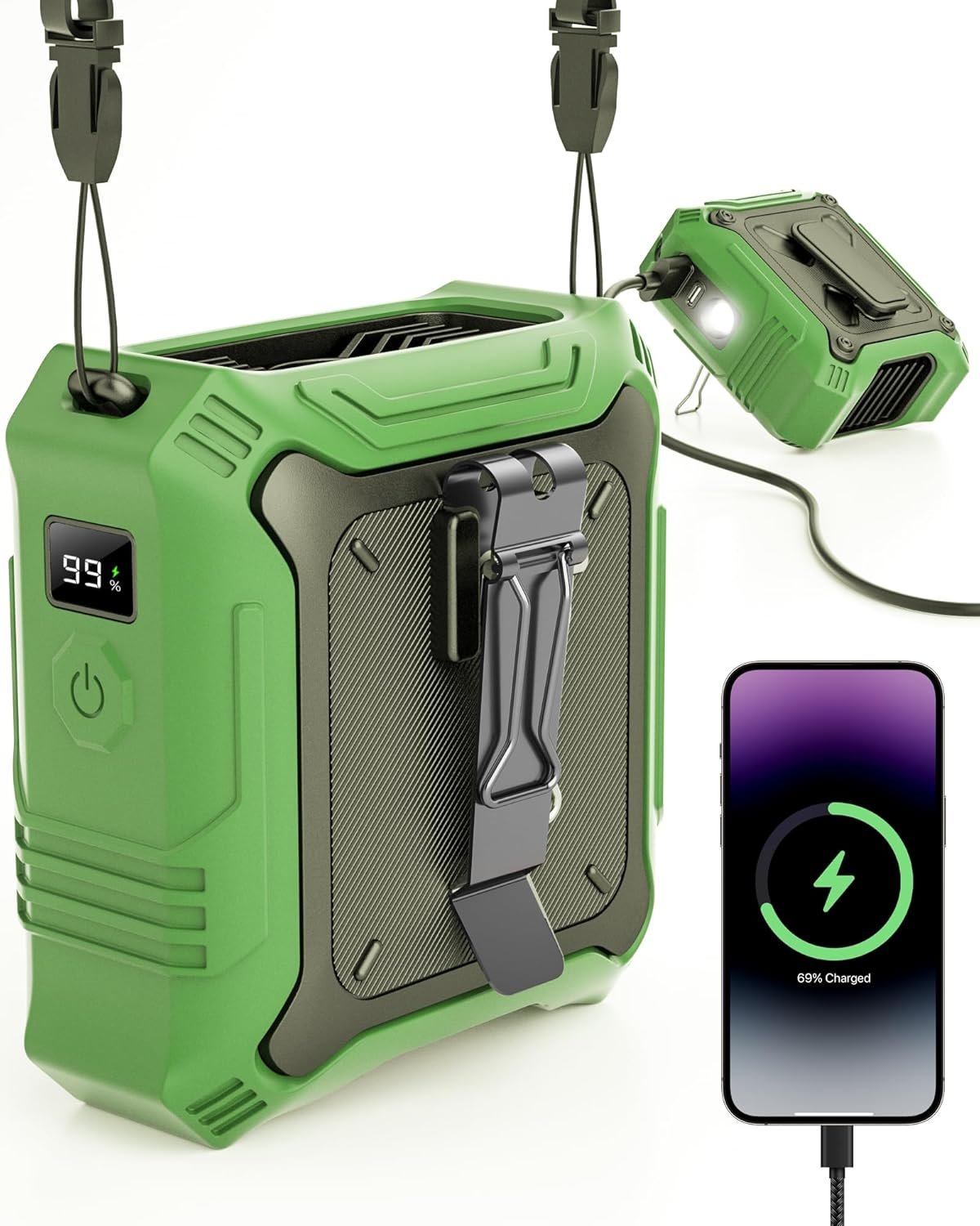 DURABLE & SAFE: This fan is designed with a protective silicone outer shell, offering shock resistance, drop protection, and sweat resistance. The anti-slip manganese steel clips prevent rust, while the dual-sided clips ensure a secure grip. Plus, the built-in LED light features an SOS flashing function for added safety. Thoughtfully designed with outdoor use in mind to meet yout need.