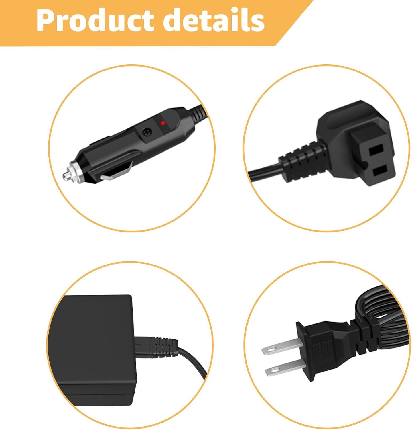 Widely Compatible:Suitable for most 12V/24V portable car refrigerators,12V AC power cord and DC power cord cigarette lighter plug Widely used for 12v freezer portable,small car fridge,dometic fridge