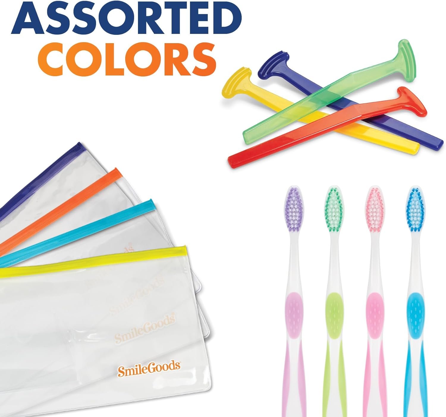 Assorted Colors for Toothbrush, Tongue Cleaner and Zipper Pouch