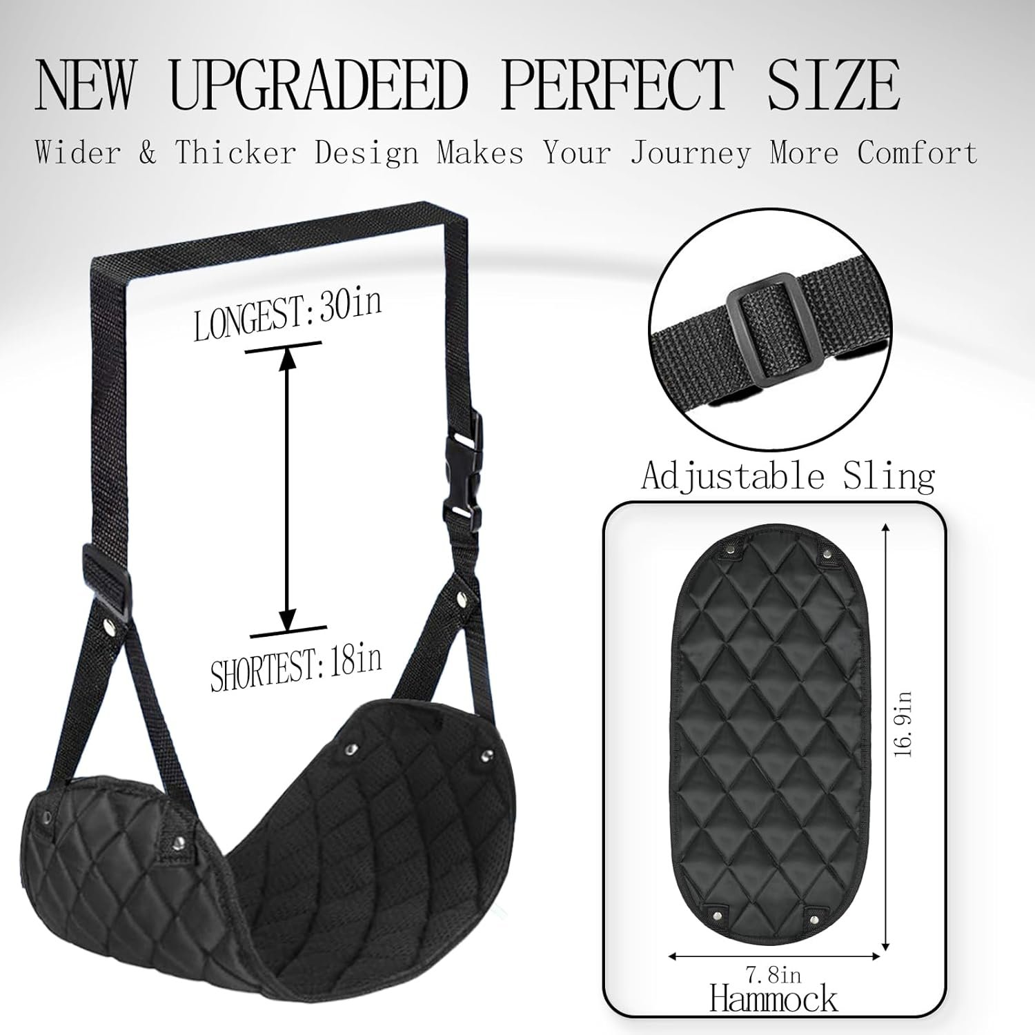 Lightweight and Portable Perfection : Enjoy a comfortable flight experience with this lightweight foot sling for airplane travel, which is your optimal choice. The airplane hammock footrest weighs only 3oz, and its pocket-sized design makes it effortless for you to put it in your travel bag or hang it on your suitcase without adding excessive weight or occupying too much space. This is highly convenient for travelers