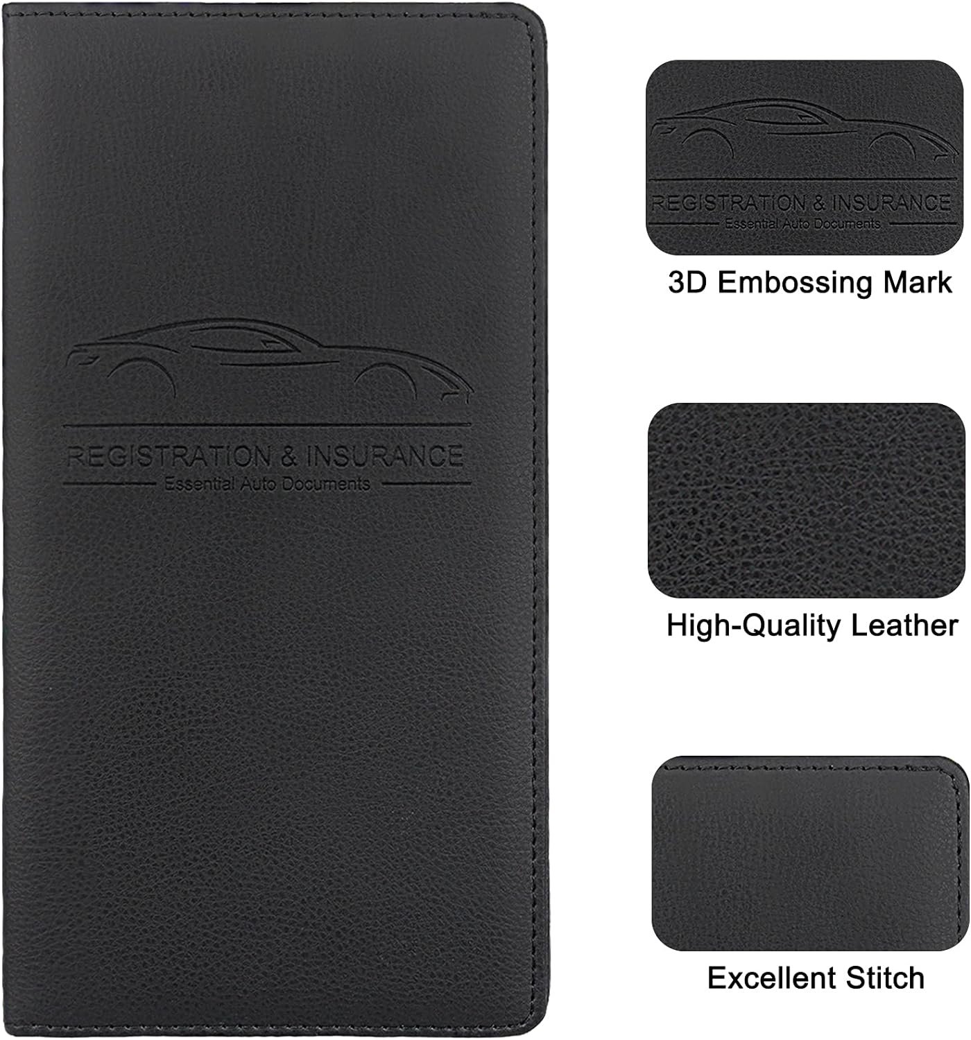 PREMIUM MATERIAL: Car registration and insurance holder are made of high-quality PU leather and vinyl PVC. The beautiful cover of 3d embossing provides a comfortable soft touch feeling and professional look. This material is durable, Tolerant‌, and looks very naturally beautiful