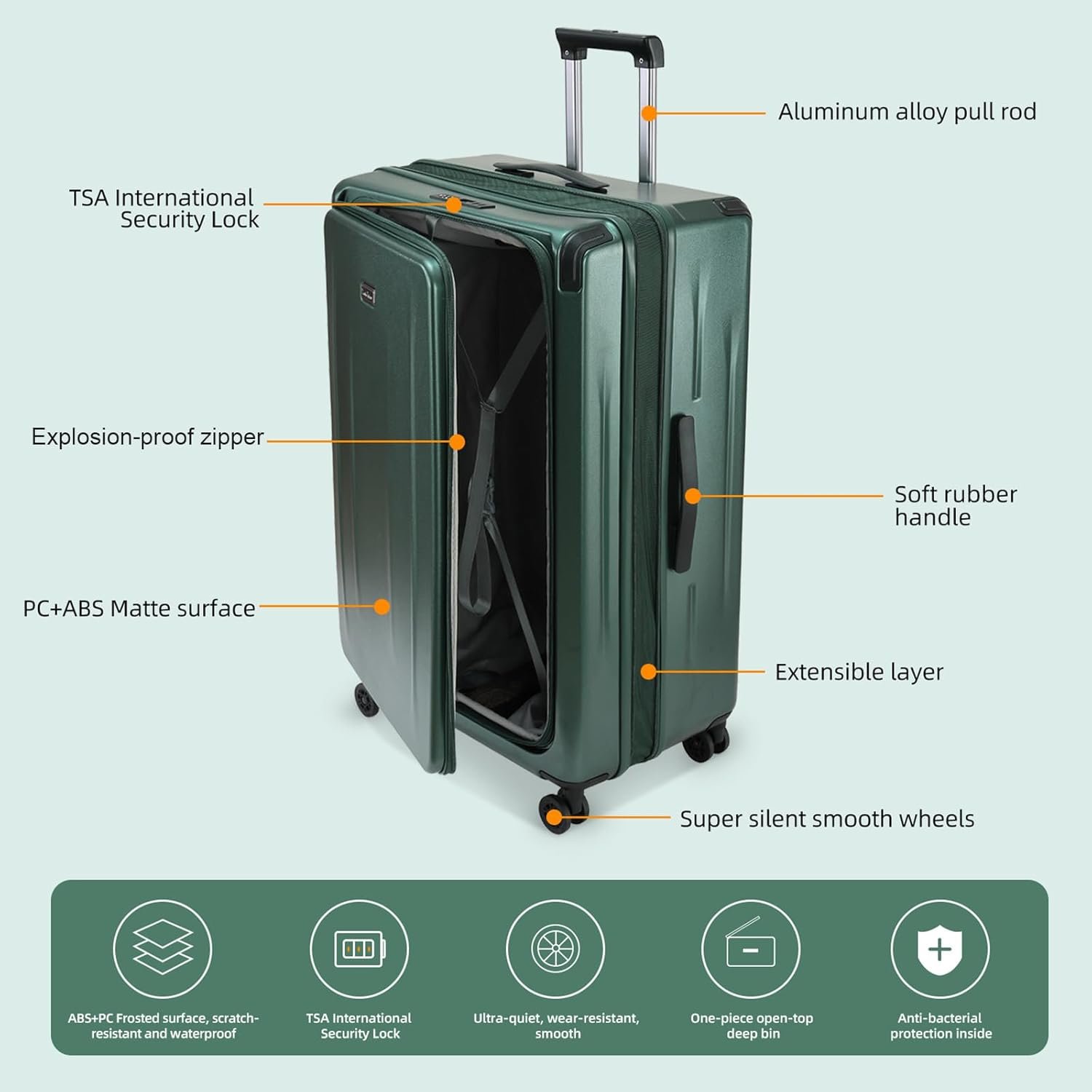Durability Meets Elegance: Our Carry On Luggage features a high-quality PC+ABS frosted surface, making it scratch-resistant and waterproof. This new material is not only environmentally friendly but also pressure-resistant, ensuring that your belongings stay safe during travel.