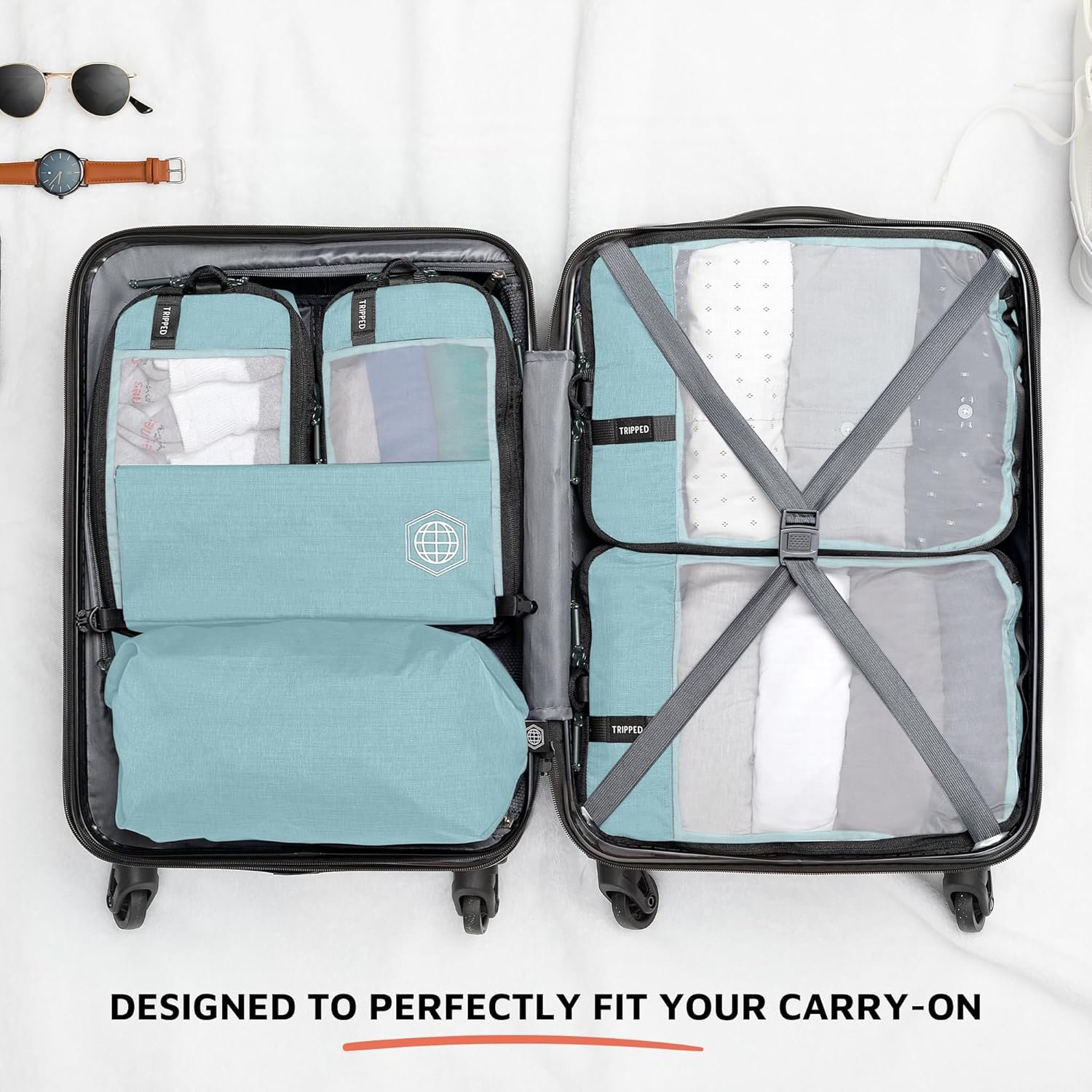 Maximize your luggage space with TRIPPED Travel Gear compression packing cubes, designed to help you fit more into your suitcase while keeping your clothes wrinkle-free and organized for your adventures