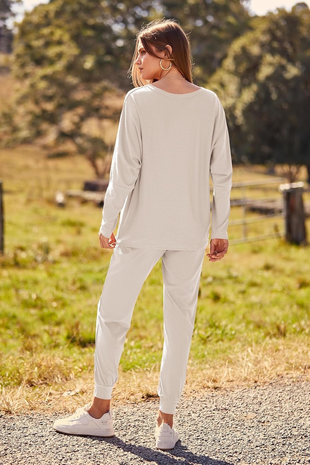 PRETTYGARDEN Women’s Spring Fall Fashion Outfits 2 Piece Sweatsuit Long Sleeve Pullover Long Pants Ribbed Matching Lounge Set
