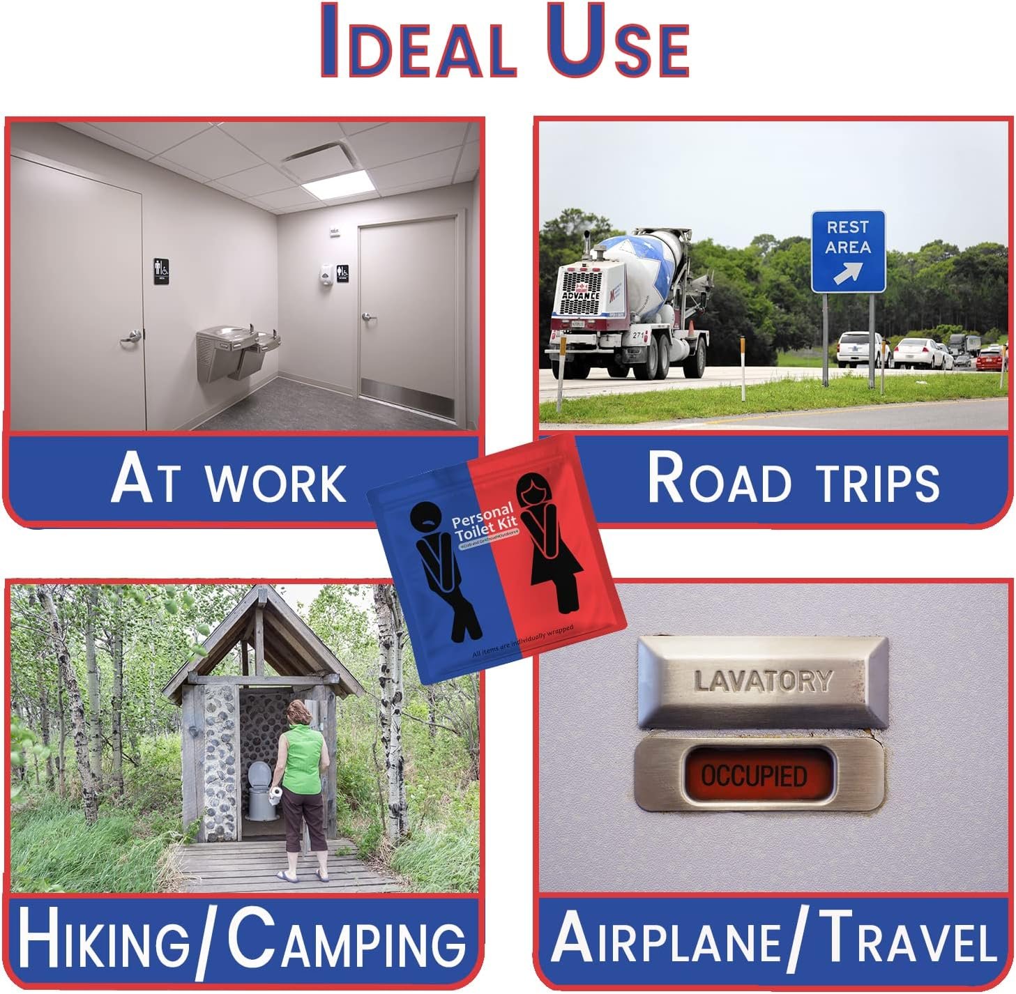 On the Go Bathroom Kit: Perfectly designed for outdoor enthusiasts, this packable and portable kit provides everything you need for bathroom emergencies during hiking, camping, or any travel activities.