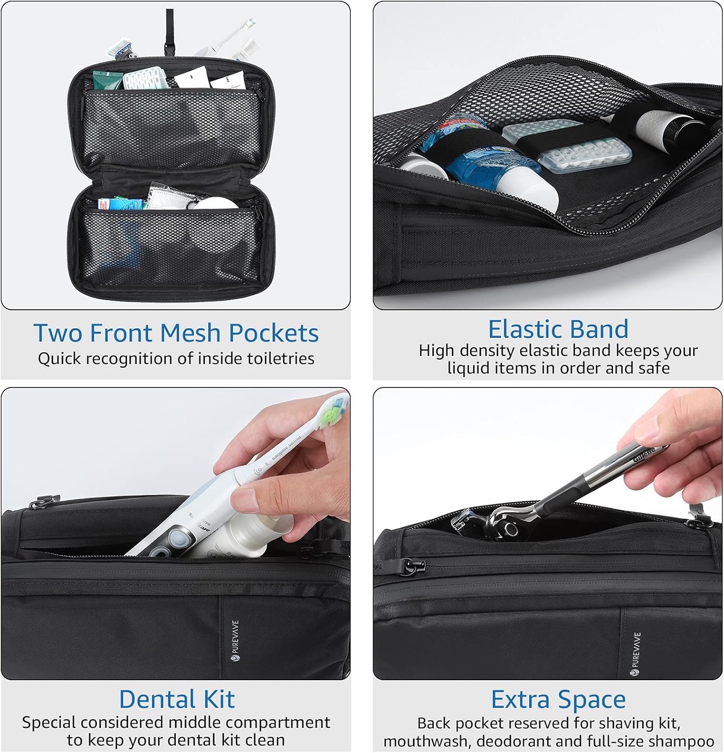 Purevave Compact Mens Toiletry Travel Bag Hanging, Mens Dopp Kit for Travel Waterproof, Wash Pouch Black