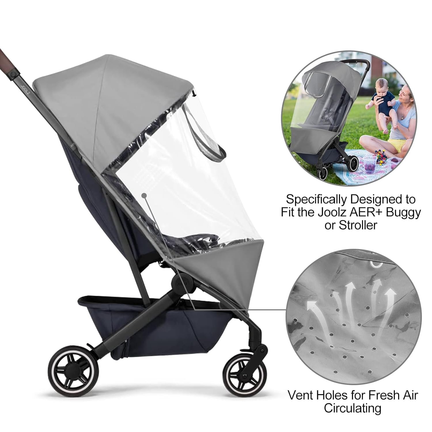 Tailored Protection for Your Joolz AER+: Engineered specifically for your Joolz AER+ stroller, this precision-fit rain cover delivers complete weather protection without compromising. Unlike universal covers that gap and blow open, this custom fit stays put even in heavy wind – yet removes as easily as it goes on.