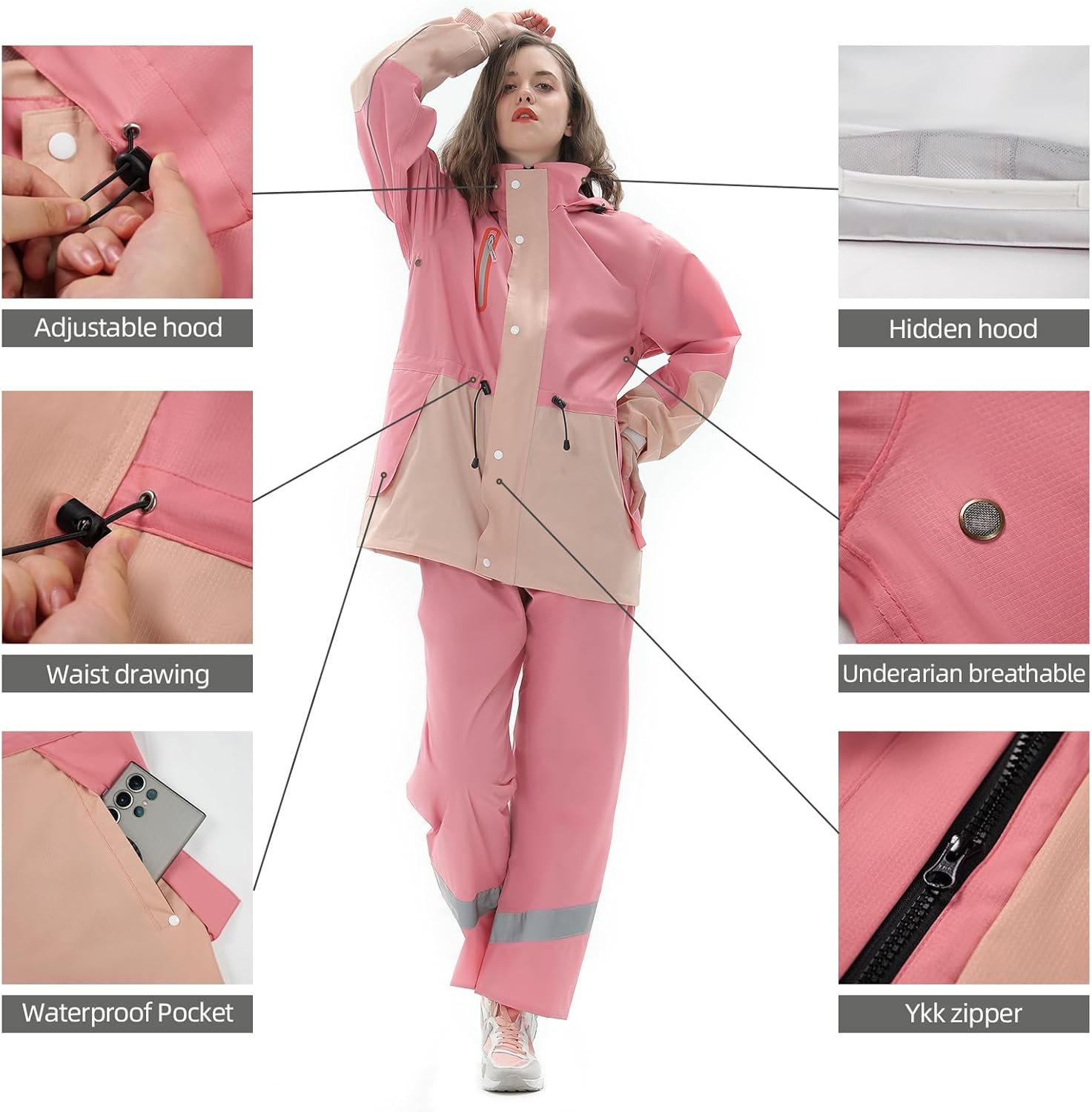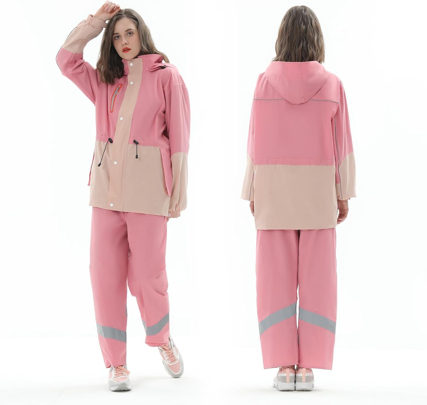 Rain Suit for Women, Waterproof Rain Jacket & Trouser with Reflective Srtip, Rain Gear for All-Sport Anti-storm