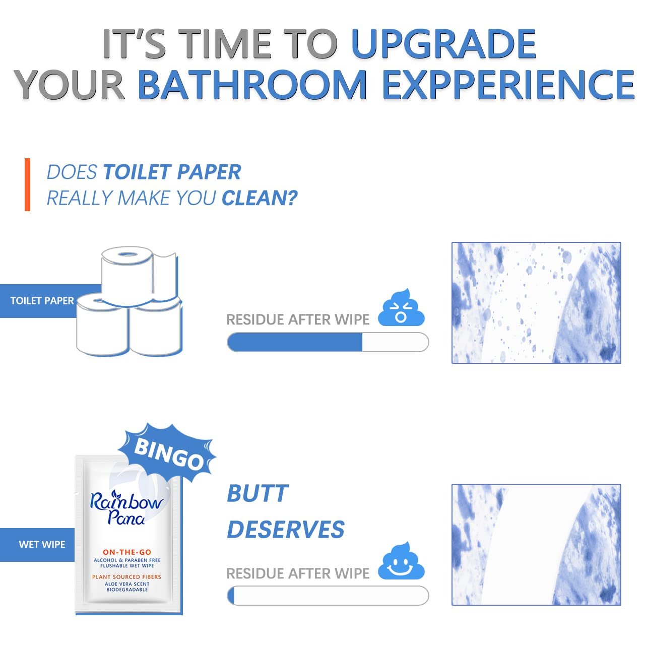 【UPGRADE YOUR BATHROOM EXPERIENCE】: Treat yourself to a fresher, cleaner, and more enjoyable bathroom experience with RainbowPana Flushable Wet Wipes. Refresh and deodorize yourself for an all-day-long clean feeling. Butt deserves!