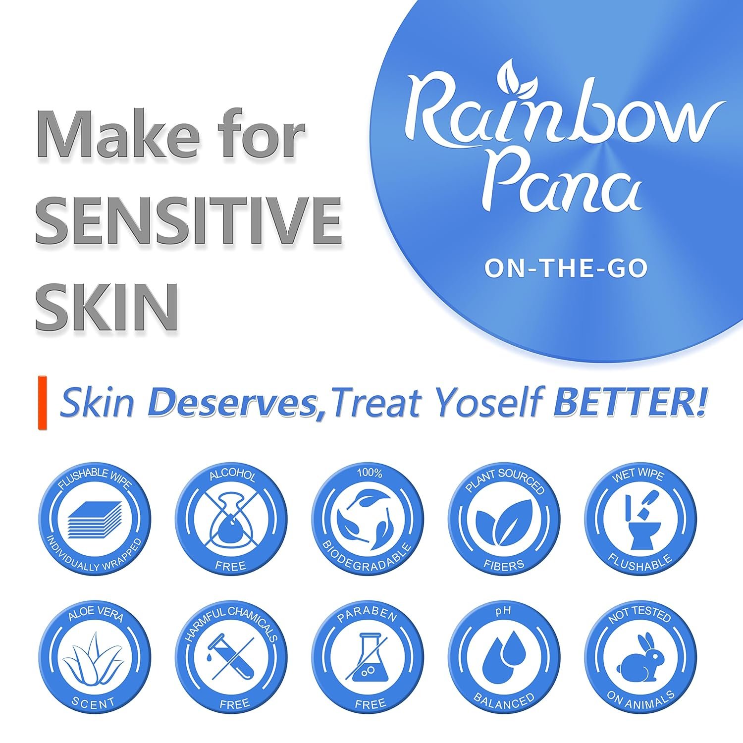 【DESIGNED FOR BUTT, MADE FOR FAMILY, QUALITY MATTERS】: RainbowPana Flushable Butt Wipes are natural, safe, and gentle, specifically designed for you and your family’s down-there needs.