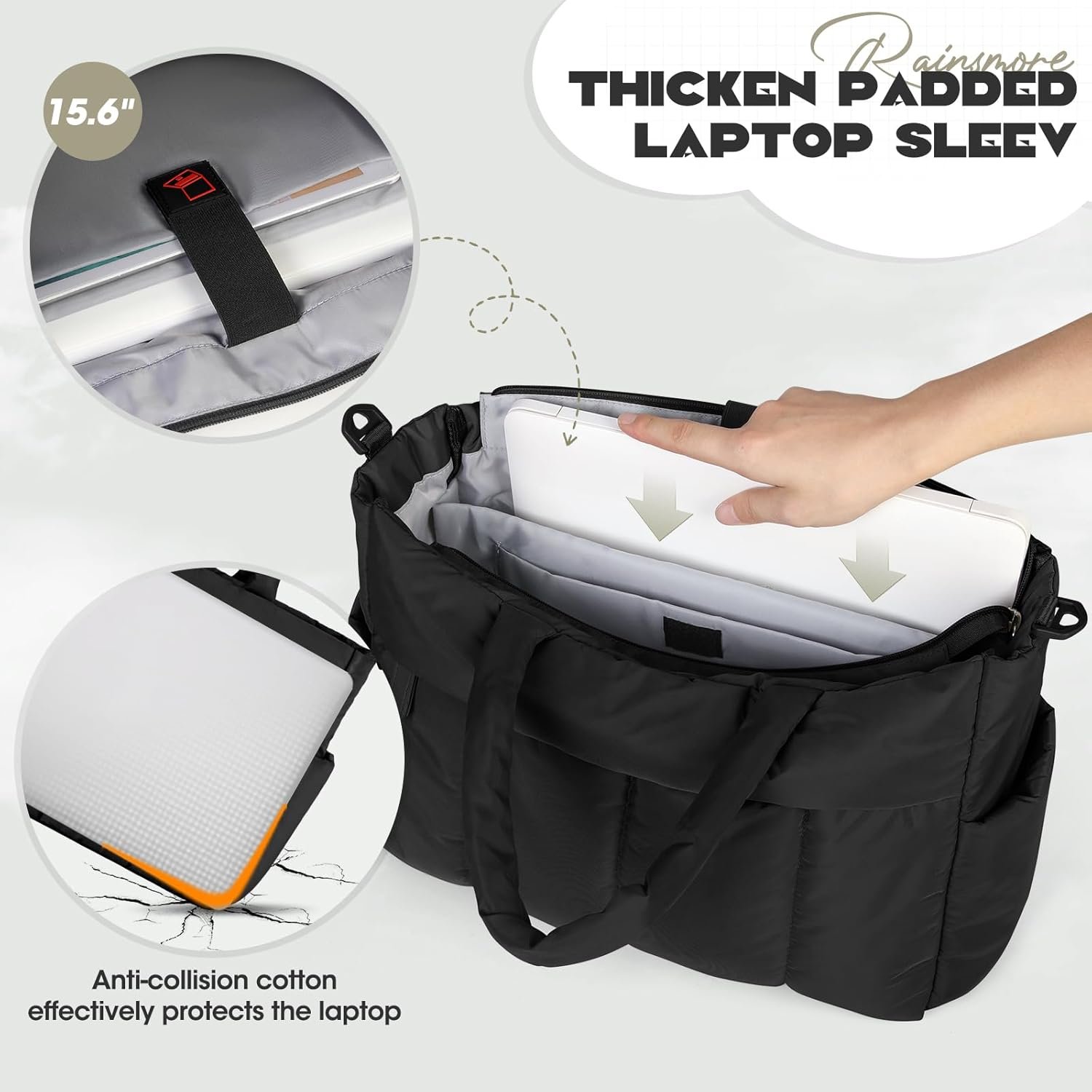 RAINSMORE Laptop Tote Bag for Women 15.6 Inch Lightweight Puffer Work Tote Bag Quilted Travel Bags with Shoulder Strap Large Computer Briefcase Teacher Nurse Bag for Casual Office Travel