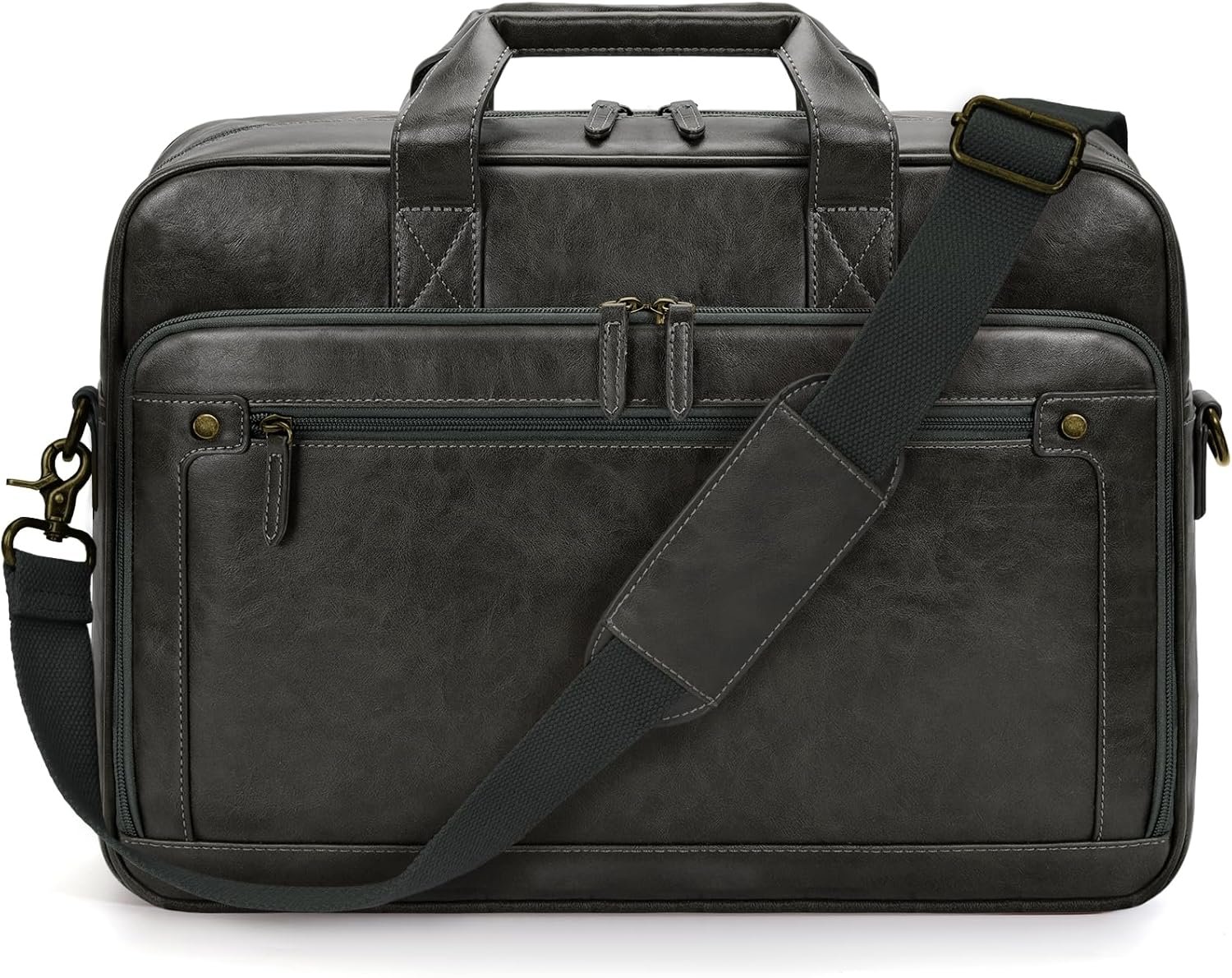 Practical Work Bag for Men: Our computer bag has a comfortable leather handle, which is practical and comfortable. The main compartment and front compartment have dual zippers for smooth and convenient use; the sturdy metal buckle can be easily converted from a handbag to shoulder bag. In addition, the luggage strap on the back allows the bag to fit snugly in the suitcase, freeing your hands and making travel more comfortable.