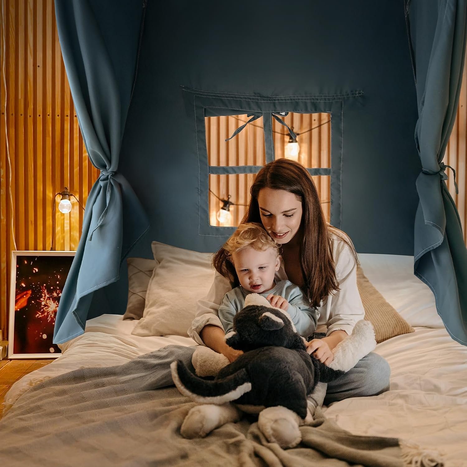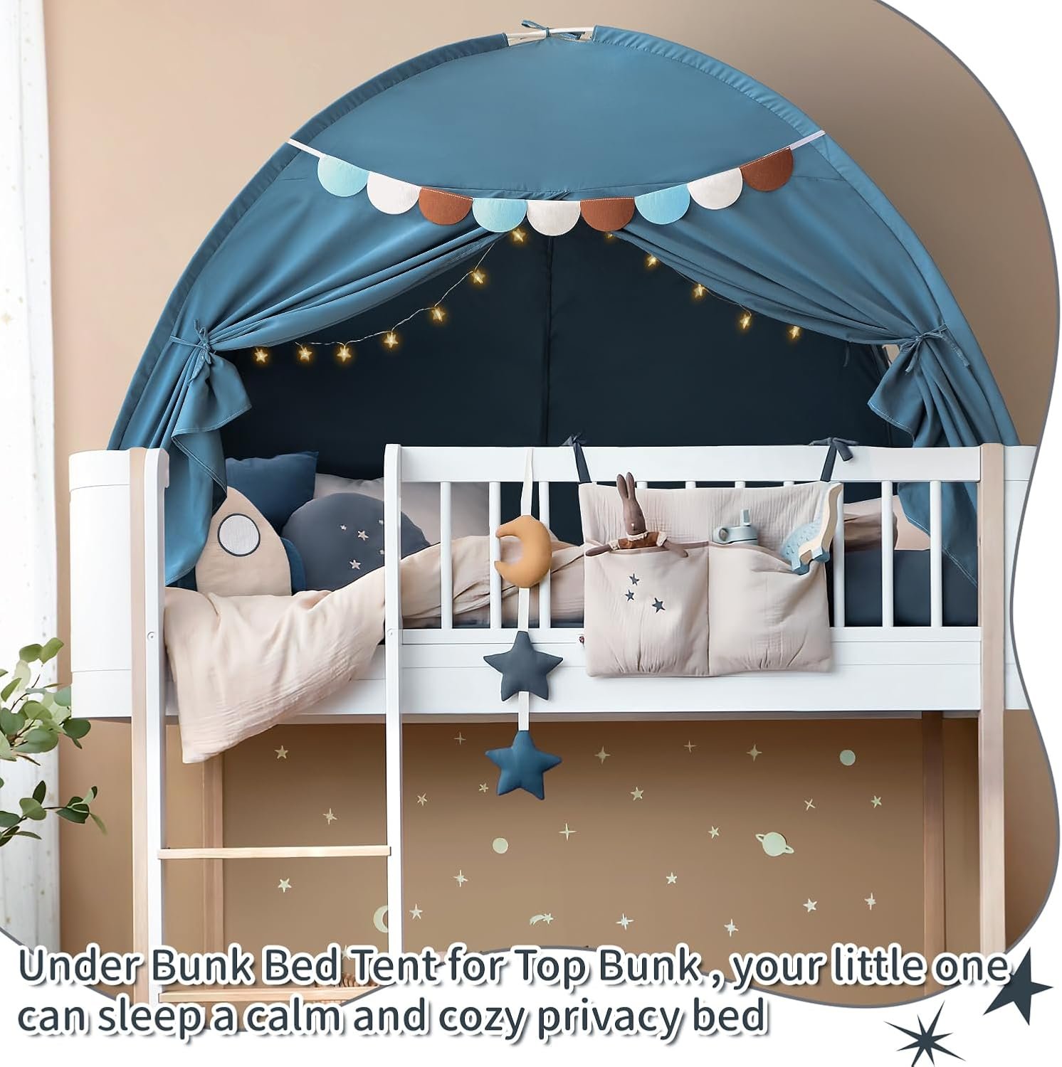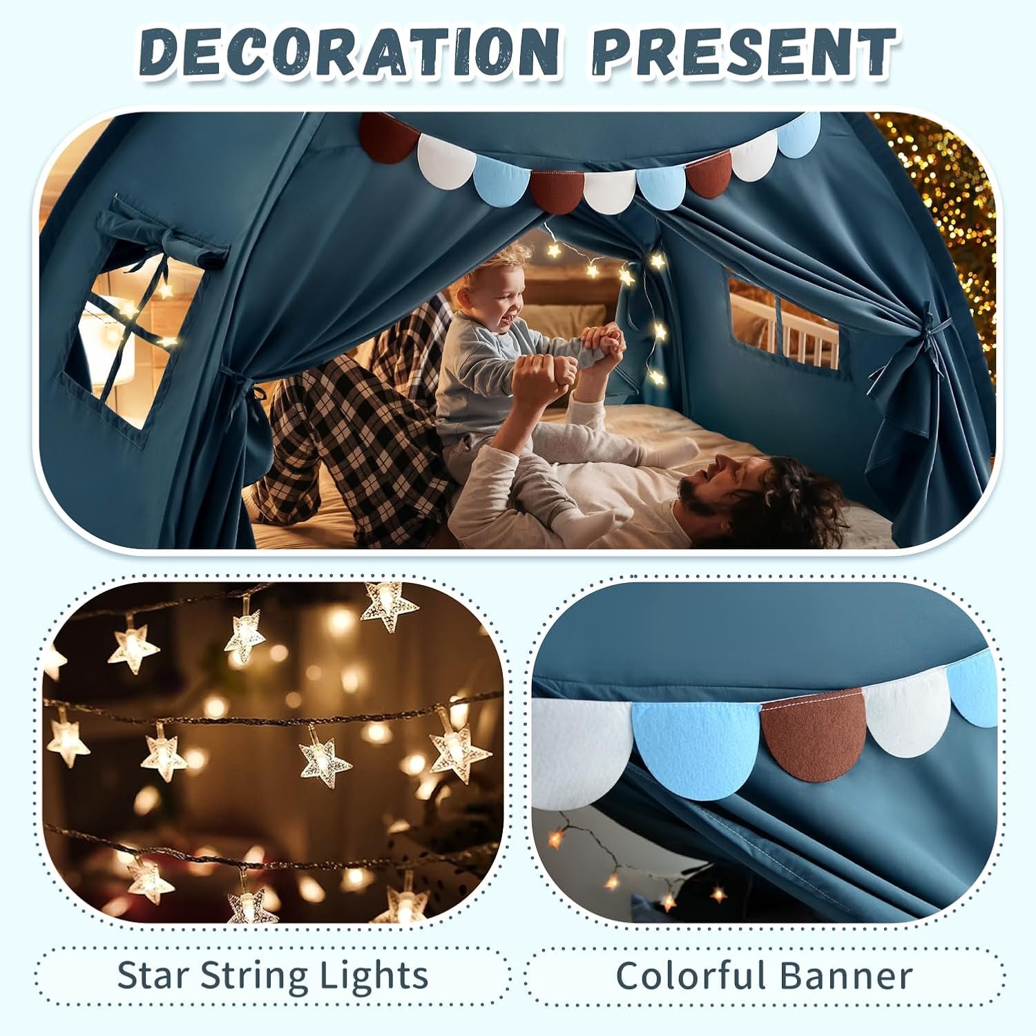 Tent for Twin Bed – Twin bed tent canopy with sturdy fiberglass poles ensures kids bed tent long-lasting performance, and come with string Lights and Pennant Banners