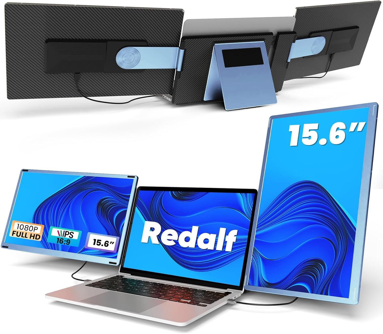 Redalf Laptop Screen Extender, 15.6″ FHD 1080P Triple Portable Monitor for Laptop,Detachable Laptop Monitor Extender, Plug-Play Compatible with Mac/Wins/Dex/Chrome