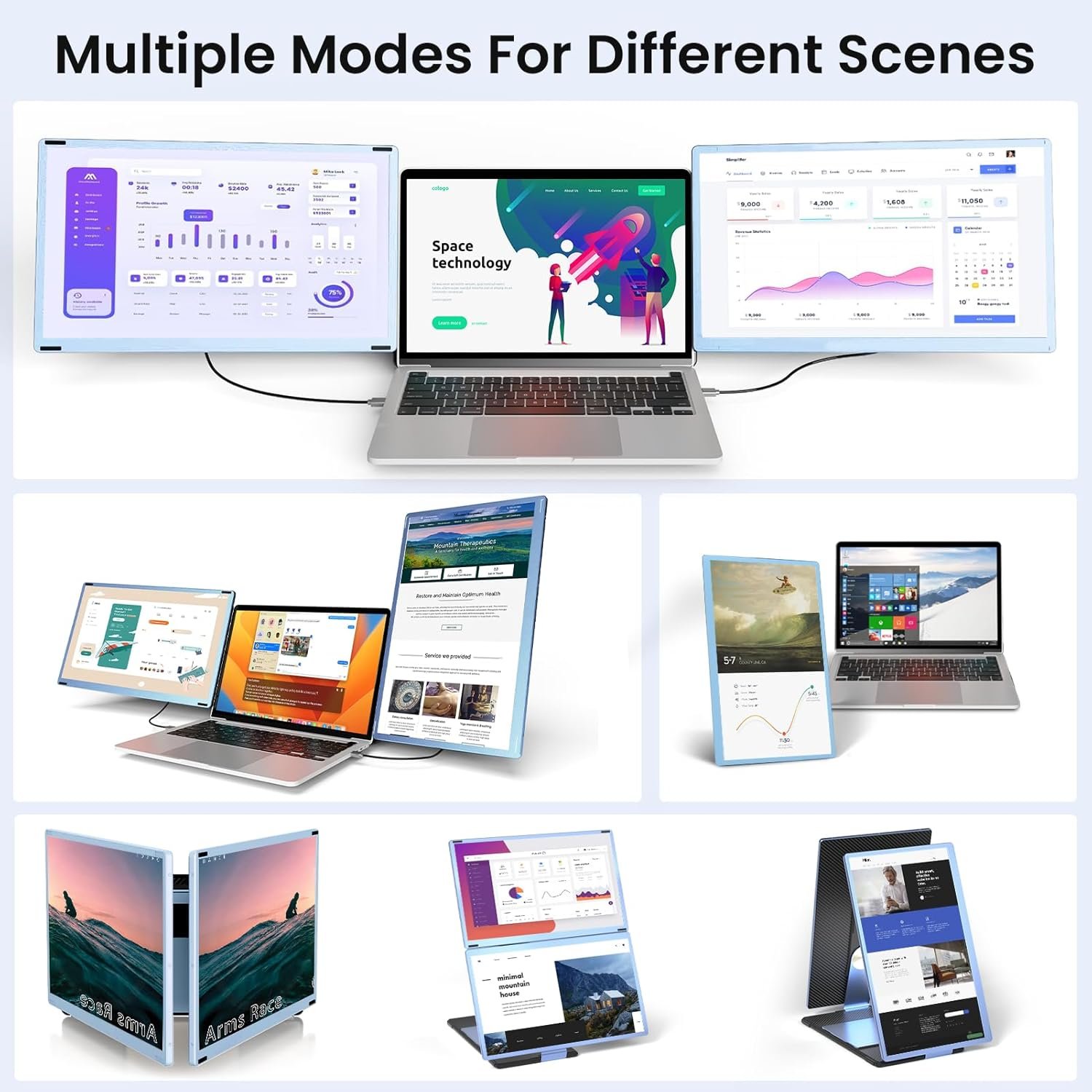 【2025 Newly Upgraded Laptop Monitor Extender】 Made of aluminum alloy and PC material, this new generation laptop screen extender is durable and drop-proof; and the upgraded magnetic structure makes it more stable. A variety of screen combinations and its detachable screens can meet all your needs, allowing you to entertain easily and work conveniently. Perfect for mobile office, remote workers, IT, gamers, stock traders, programmers and more