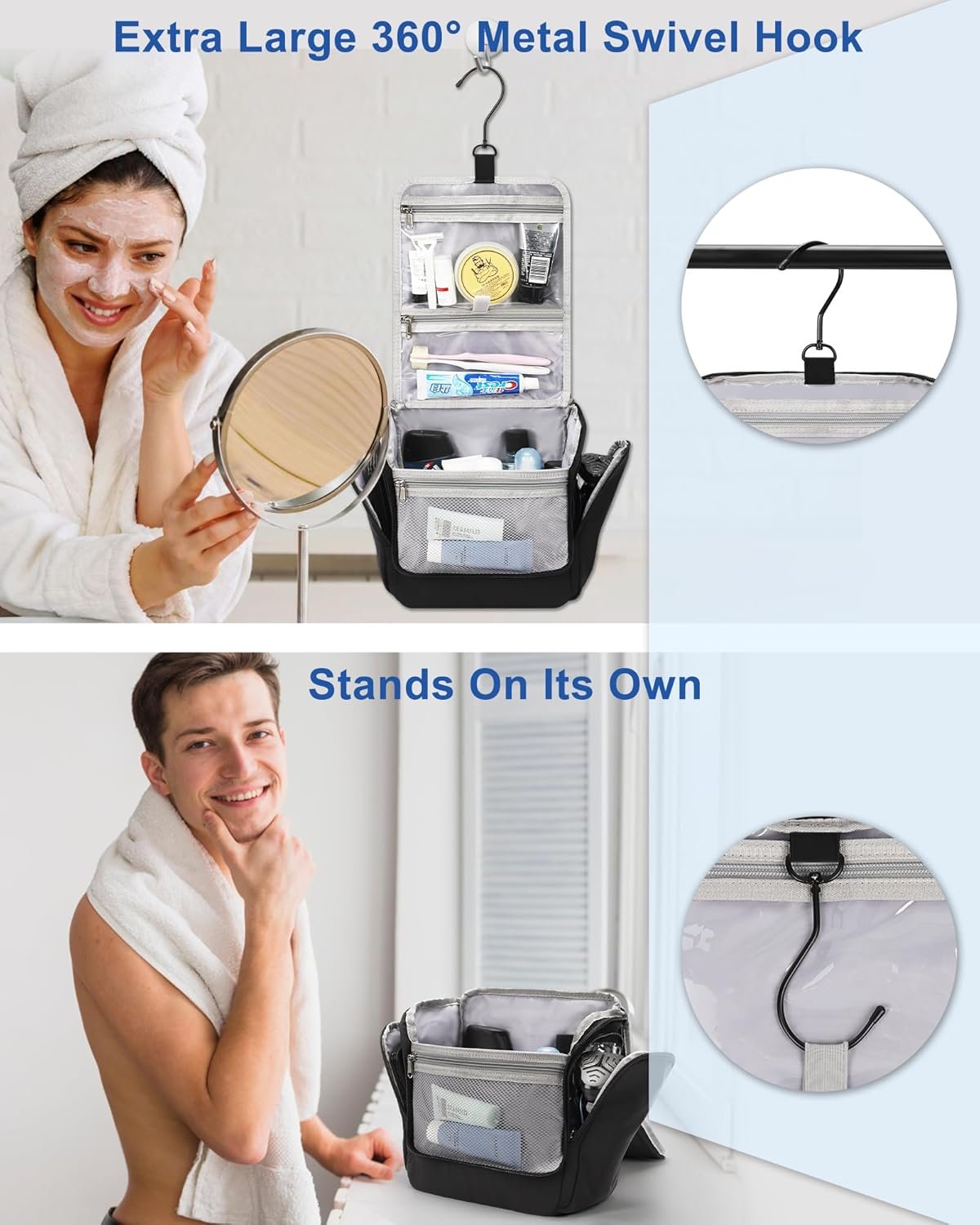 Convenient Hanging Hook: Comes with a extra large 360° metal swivel hanging hook, big enough allows you to hang the bag anywhere. Keeps its shape when hanging, easy access. More rationalized design than the same type of toiletry bag on the market.