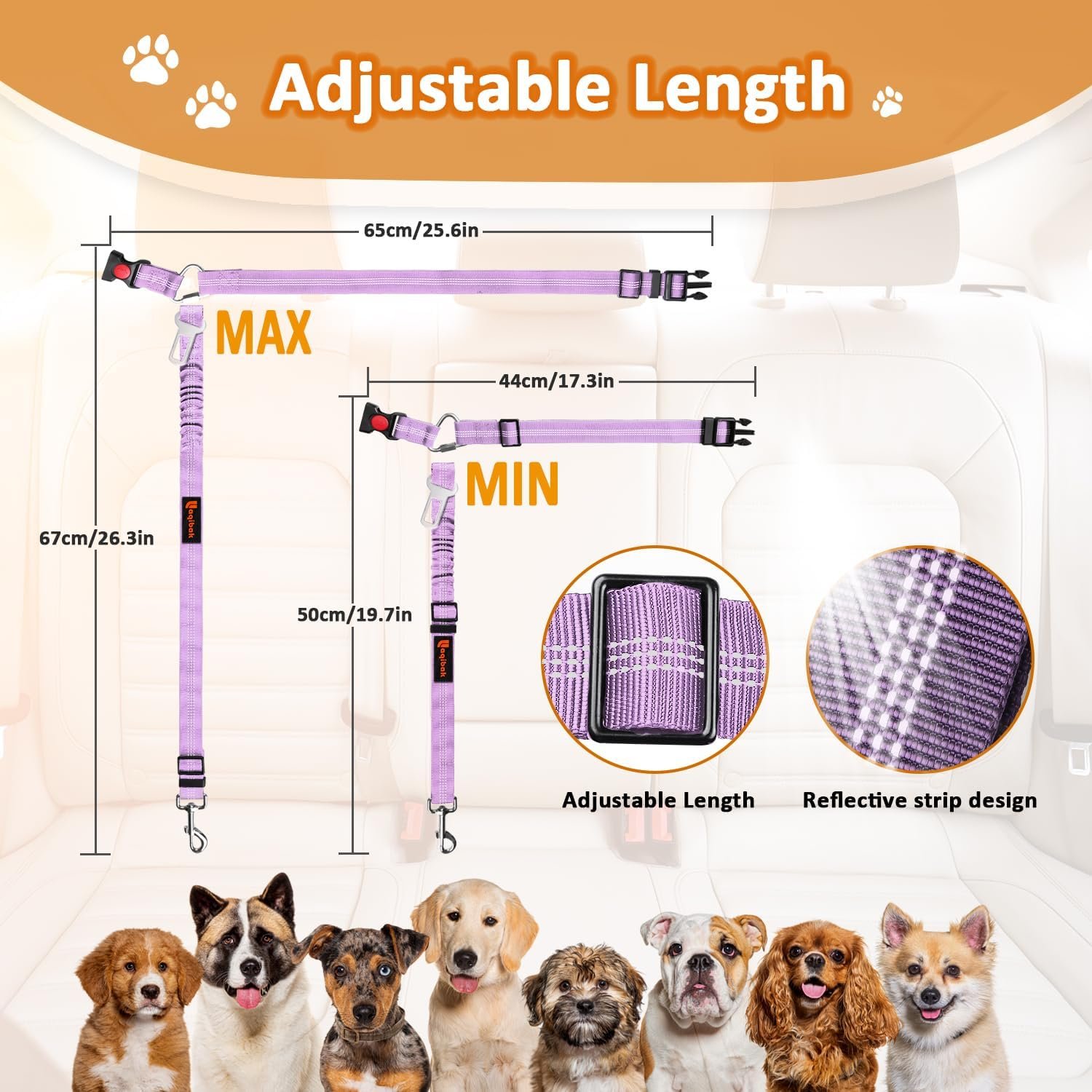 Adjustable Dog Seat Belt Length Suitable for both small and large pets.