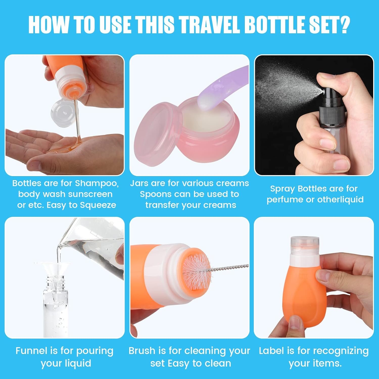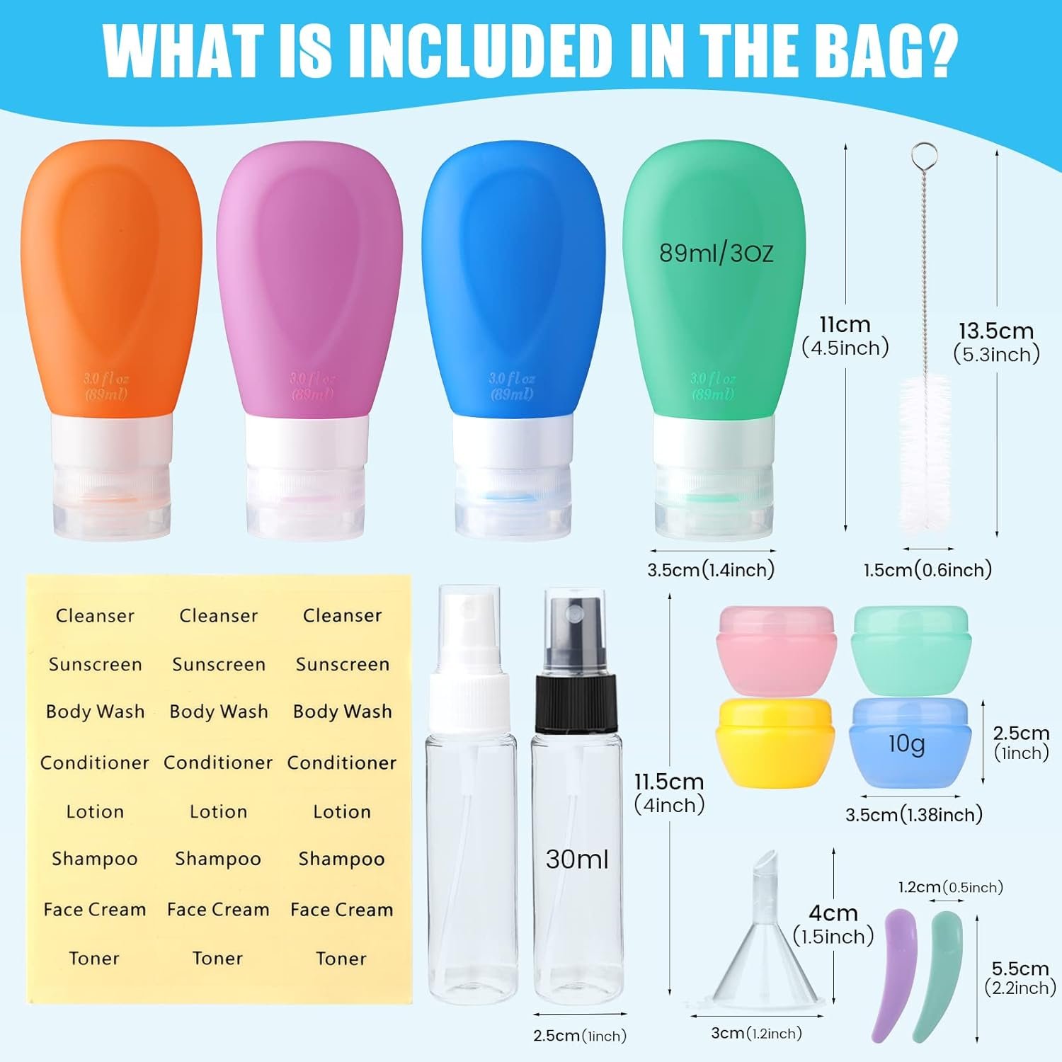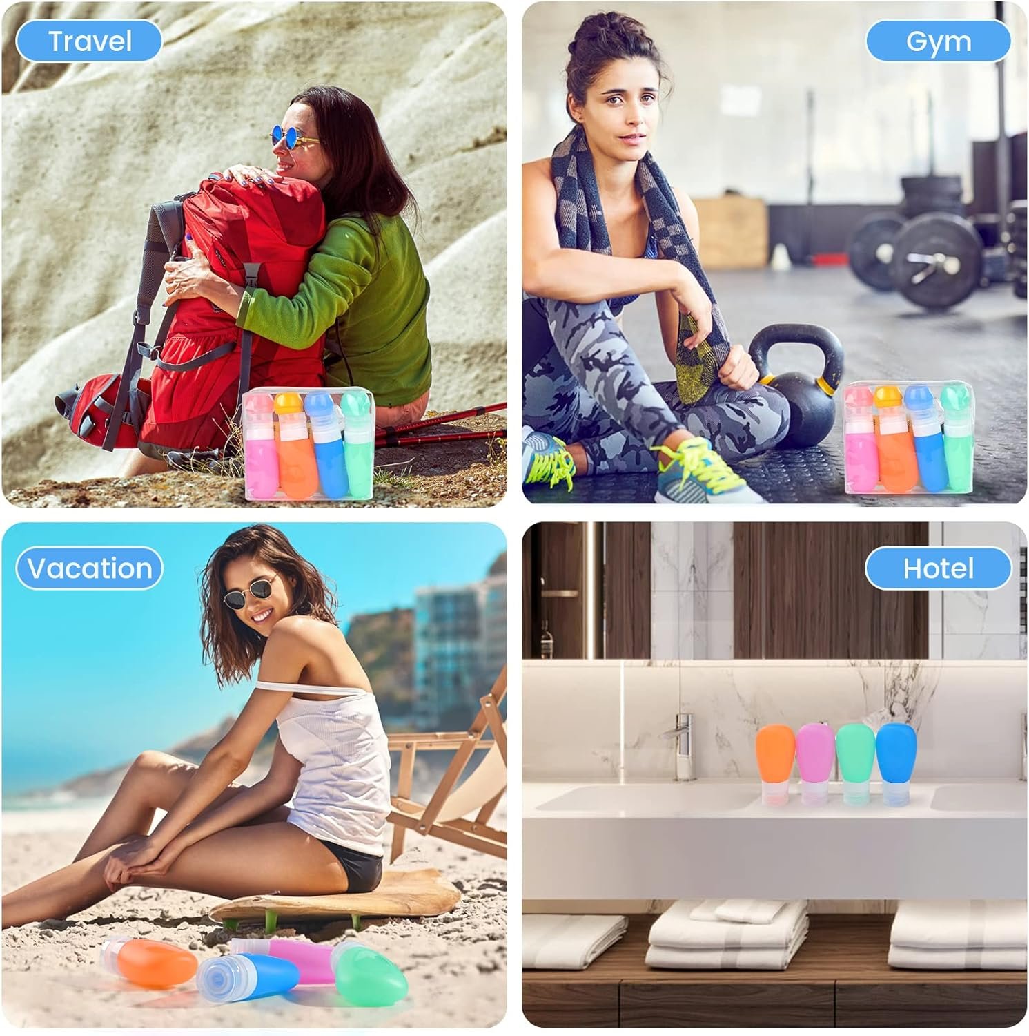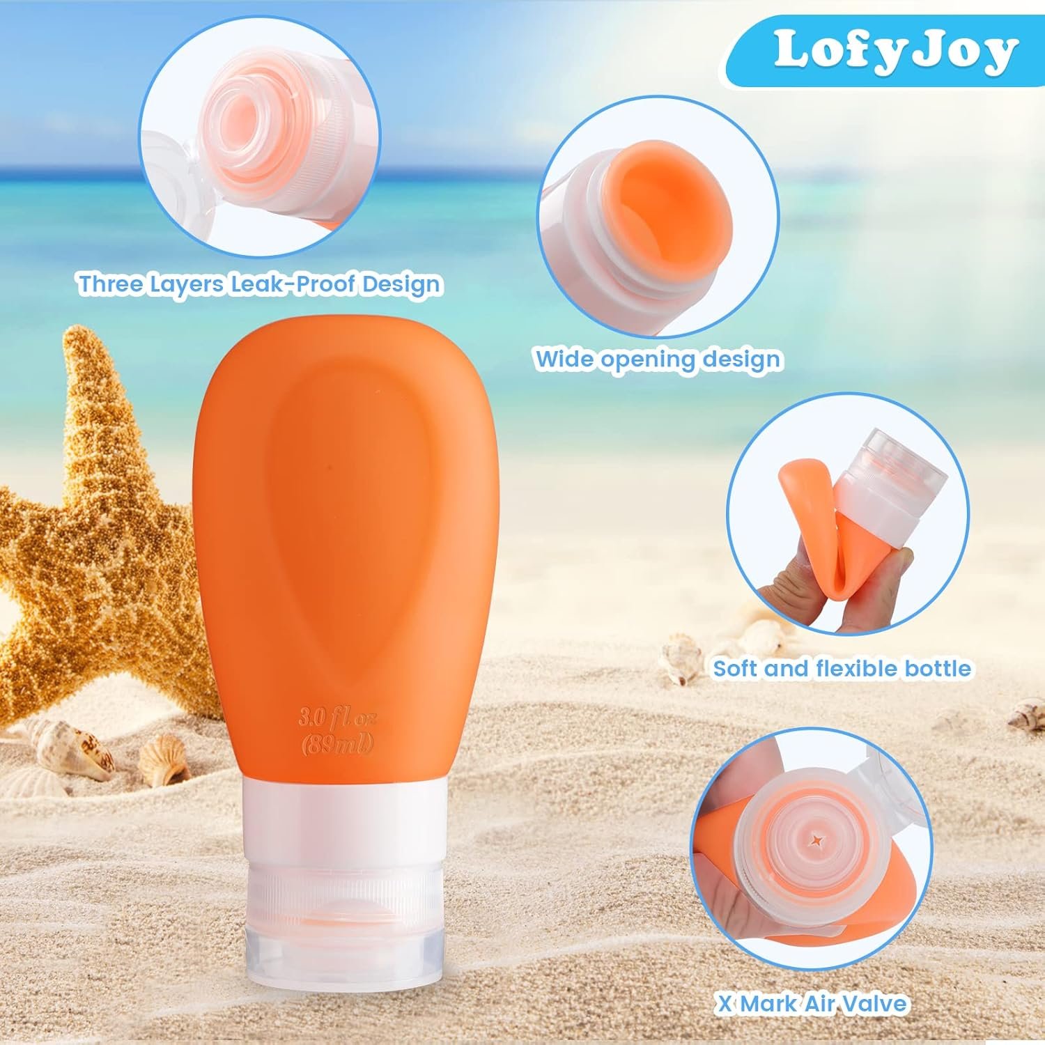 Introducing LofyJoy’s Silicone Travel Bottles for Toiletries TSA Approved, the perfect solution for all your international travel essentials. These travel size toiletries containers are leak-proof and made from soft, flexible food-grade silicone material, making them a durable and long-lasting addition to your travel kit.The sealing cap and non-drip valve ensure that your shampoo, conditioner, lotion, soap, cream, and other toiletries stay safely contained during travel, while the TSA Carry-On Approved size makes them lightweight and compact for easy packing.The wide opening and refillable design of these travel containers for toiletries make them easy to fill and clean, saving you time and hassle during travel. Plus, the included labels make them a convenient choice for staying organized on the go.These leak proof travel bottles are a must-have for any traveler looking to save space in their luggage. With their compact size and wide range of included labels, they’re perfect for easy packing and organization.Invest in LofyJoy’s Silicone Travel Bottles for Toiletries TSA Approved today and enjoy a genius product for travel that saves space and simplifies your packing routine. These travel toiletry bottles are perfect travel size containers that are easy to carry through the airport luggage check-in, and are a great choice for anyone looking for a reusable solution to their travel needs.Don’t miss out on these travel size bottles for toiletries that are a must-have in your travel kit. Order your set of leak proof travel bottles today and experience the convenience of LofyJoy’s Silicone Travel Bottles for Toiletries TSA Approved.