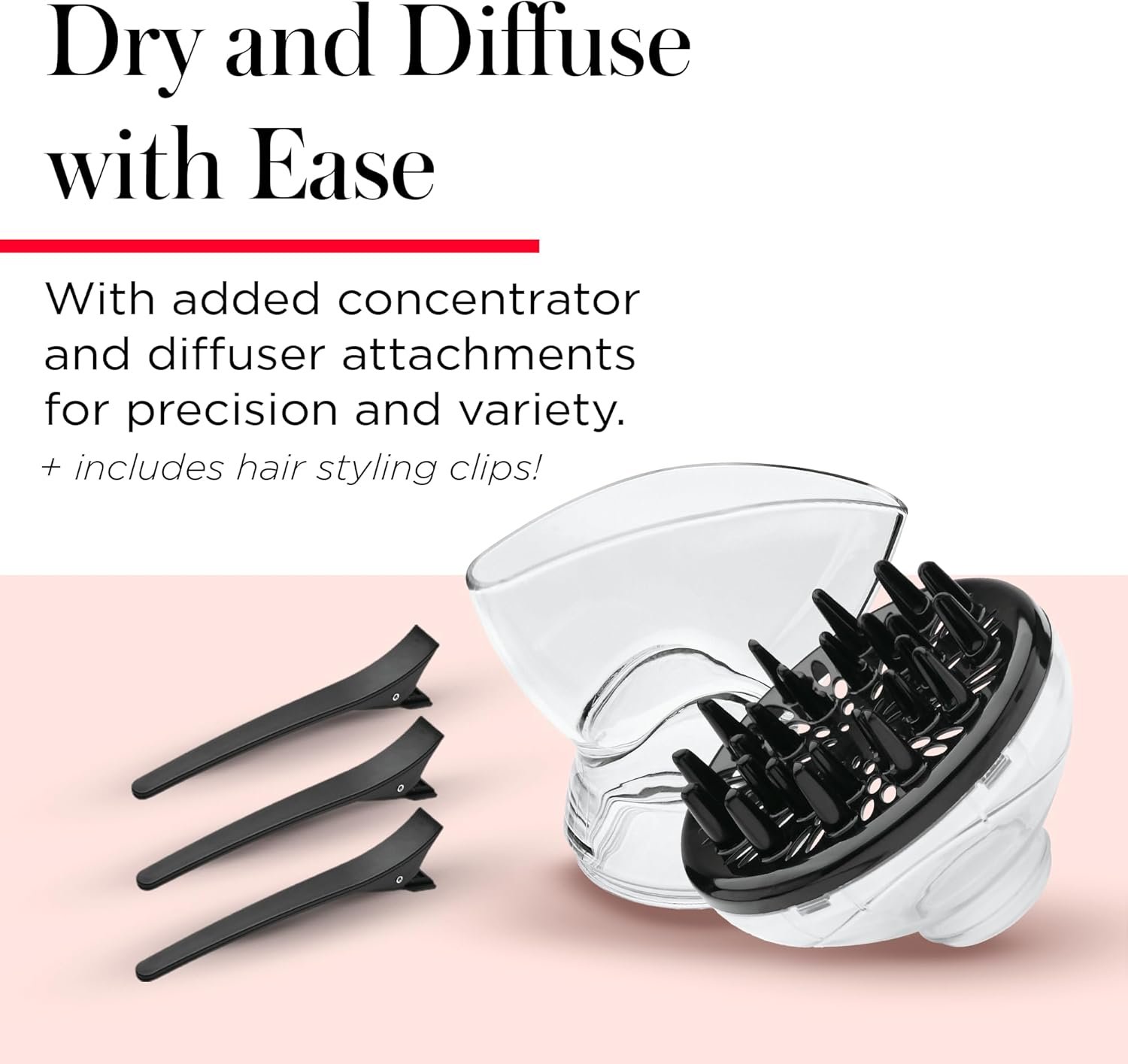 Simple Yet Versatile – This Revlon Hair Dryer includes a concentrator, diffuser, and styling clips for styling variety and ease. 3 heat settings and 2-speed settings lock in long-lasting styles and are great for all hair types