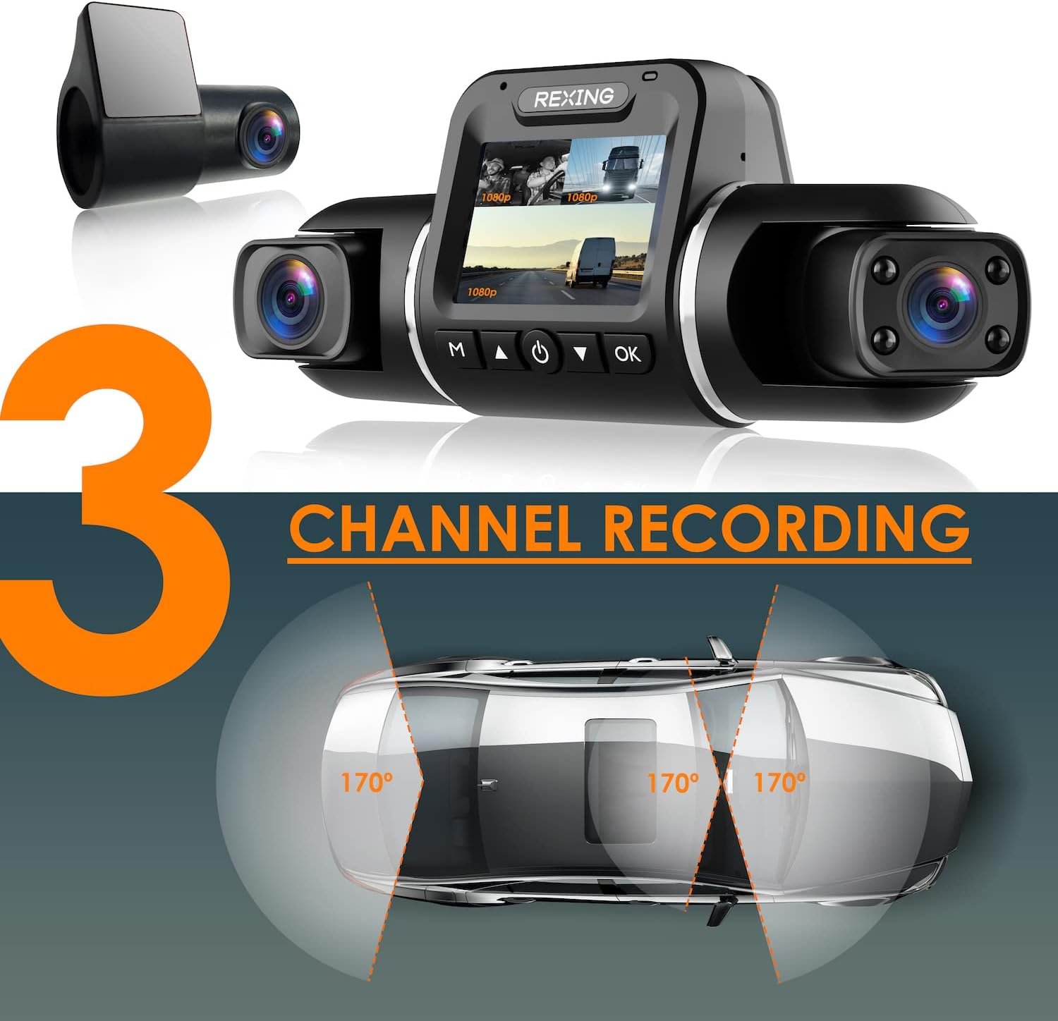3 CHANNEL RECORDING: Completely cover the front, inside cabin and rear of your vehicle with Wide Angle 170° lens that each record 1080p Full HD at 30fps. Adjust the 330° Swivel Angle lens to change the front and cabin view per your needs