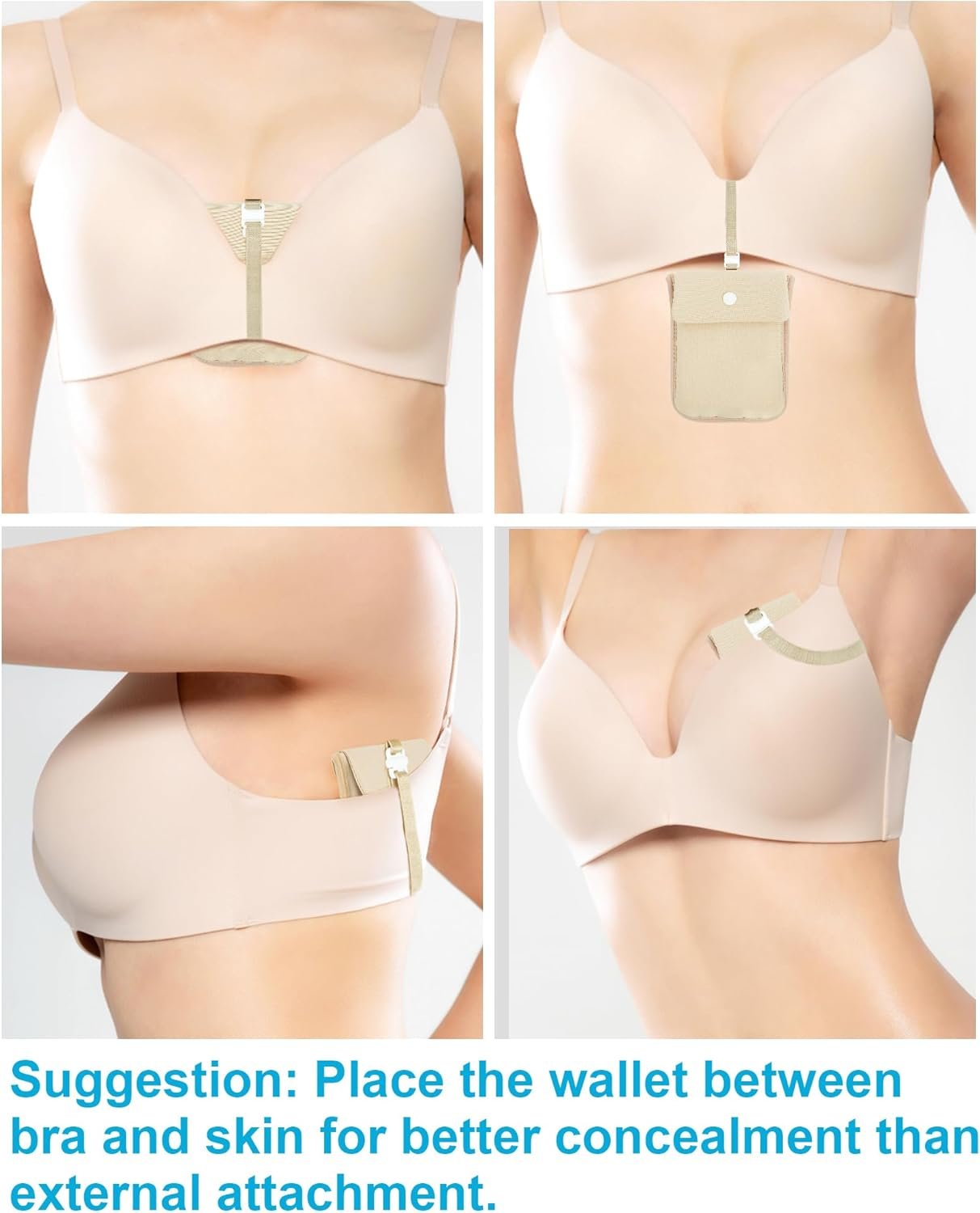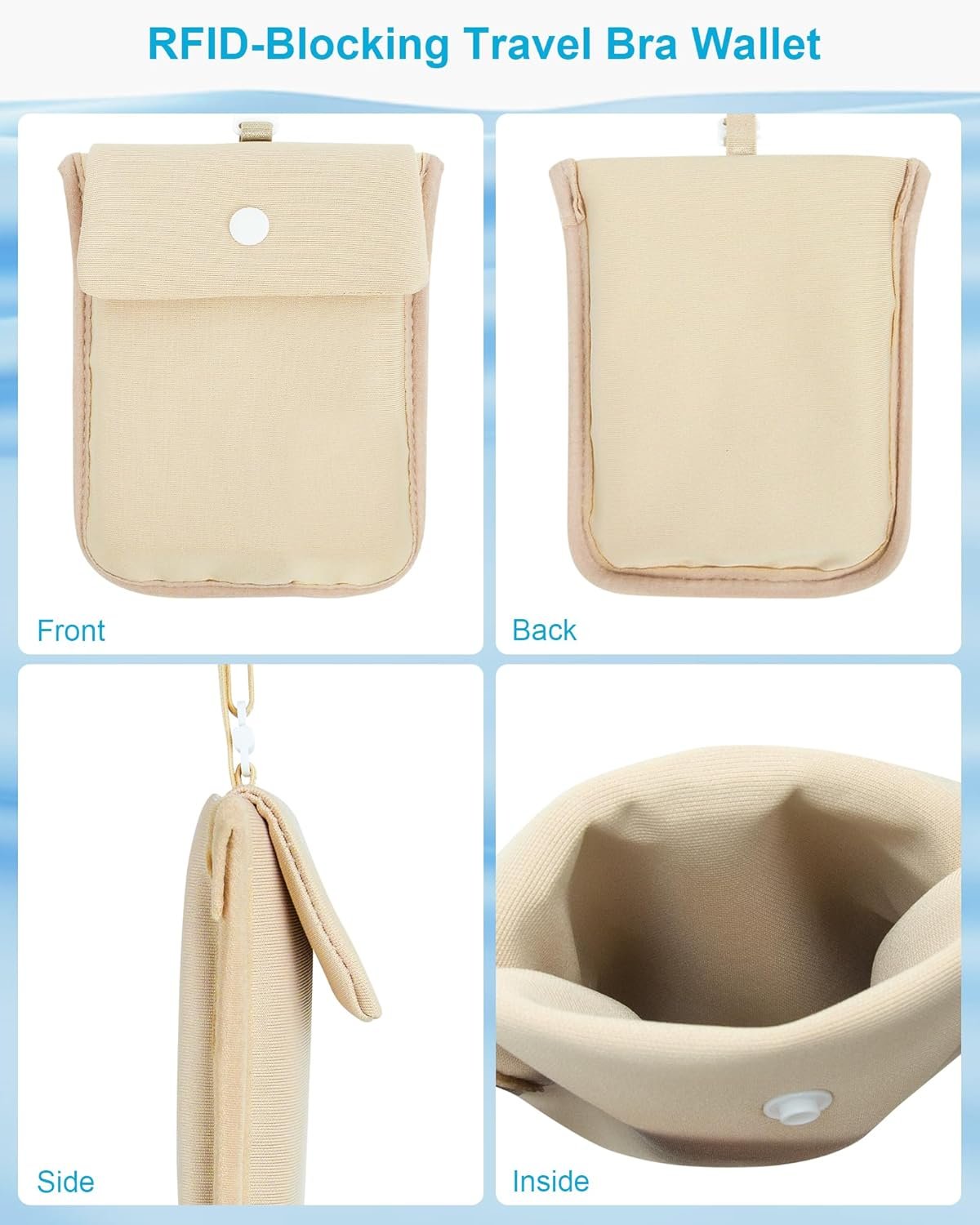 Secure RFID-Blocking: Ensure the safety of your passport, credit cards, ID, and cash with our RFID-blocking hidden bra wallet, designed to keep your essentials organized and protected during travel or special events
