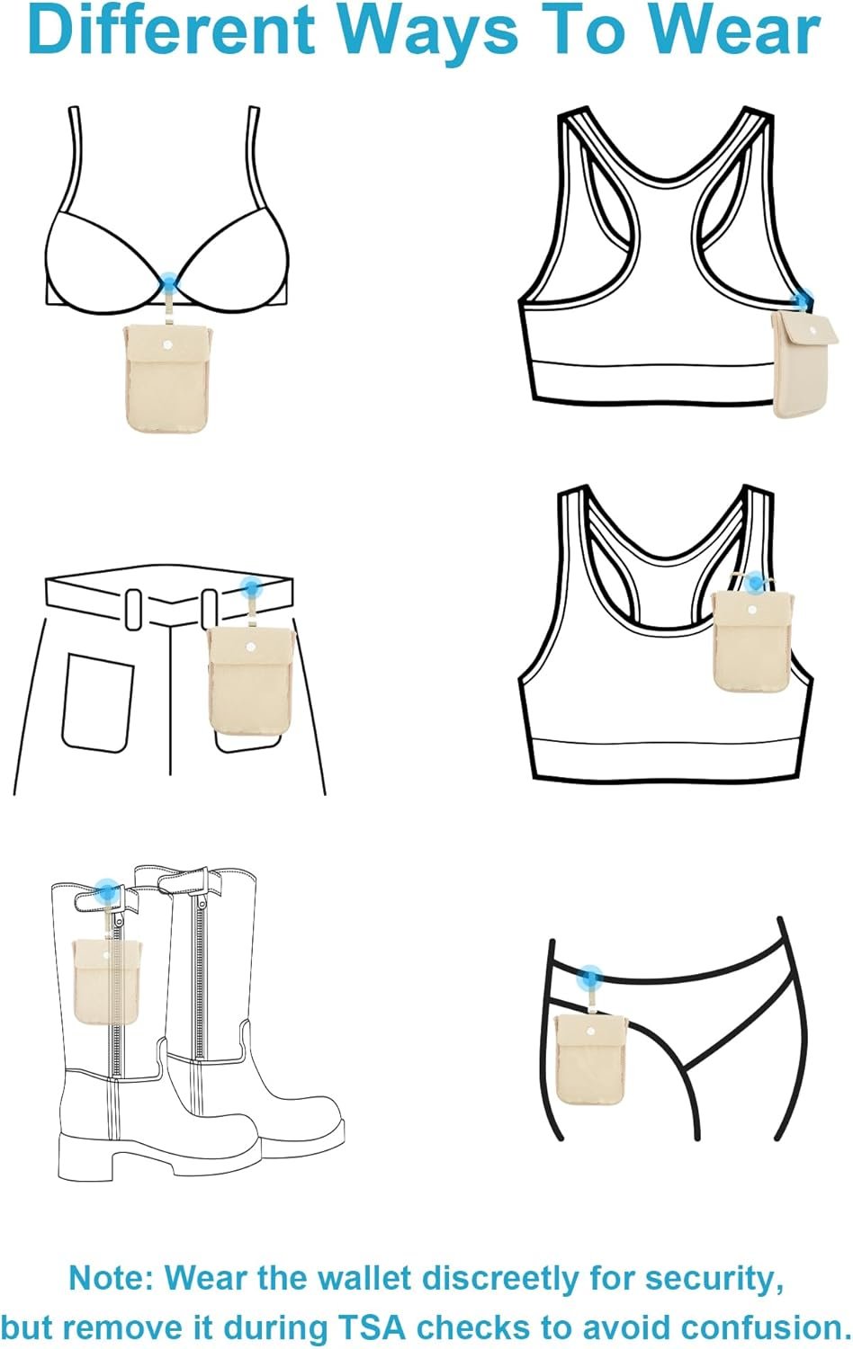 Note: Wear this travel wallet discreetly under your clothing for optimal security. However, remove it when passing through TSA to prevent any confusion.