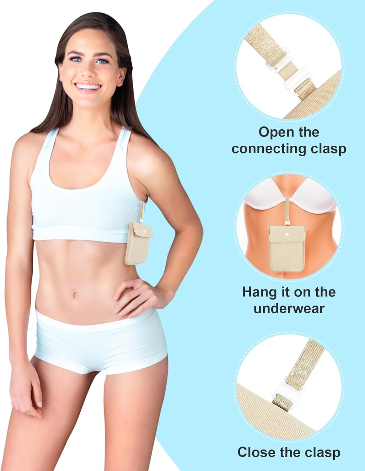 Adjustable & Versatile: Fit any bra with the adjustable strap, allowing for a customized fit from 3.3″ to 5.9″. Plus, its versatility lets you wear it in multiple ways, including on bra sides, panties, or even as a neck pouch with the included lanyard