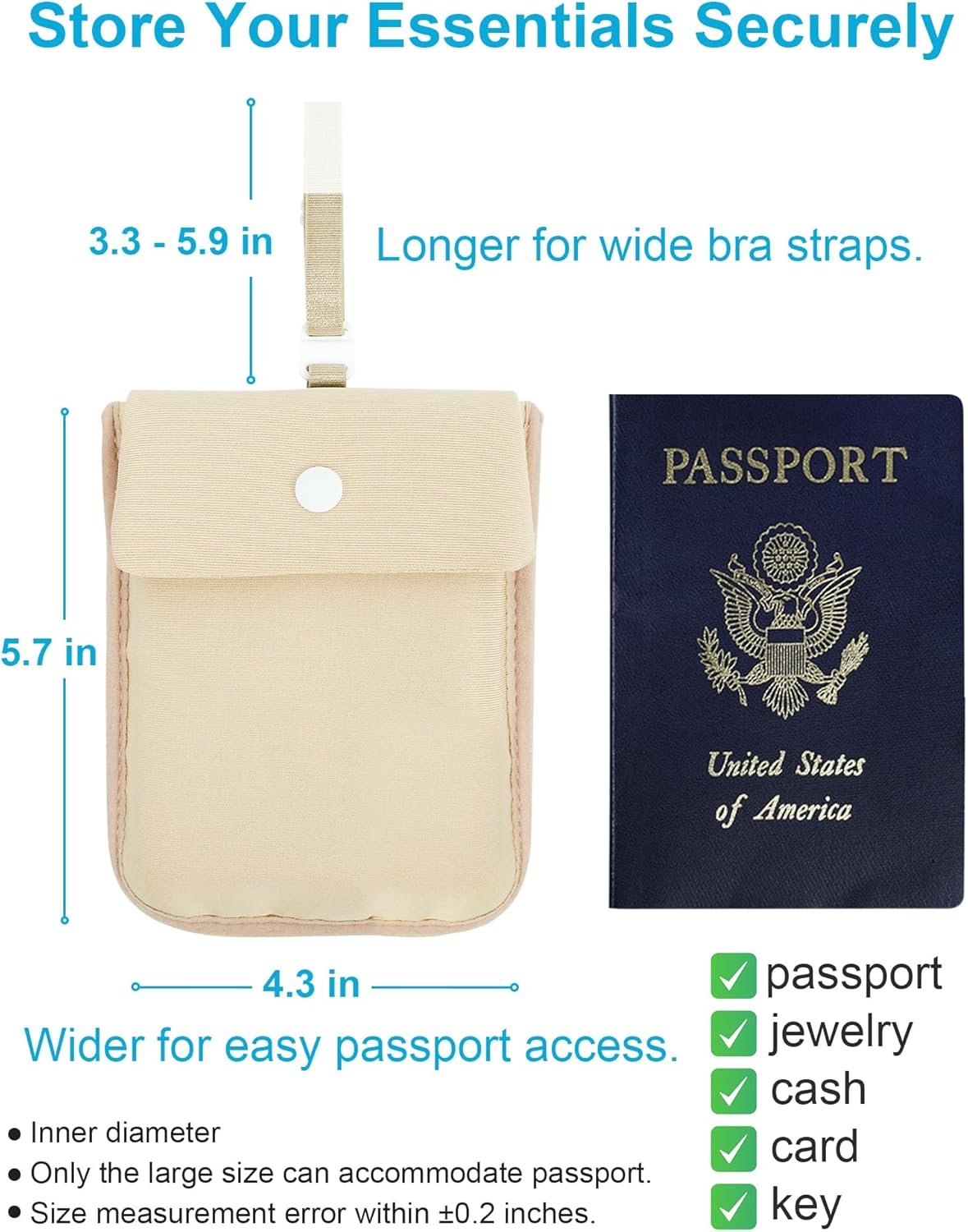 Optimal Size: With a roomy 5.7″ x 4.3″ inner diameter, this bra pouch is designed to be unnoticeable under clothing, yet offers ample space for your passport, cards, key, and cash, serving as an ideal secret pocket for your valuables