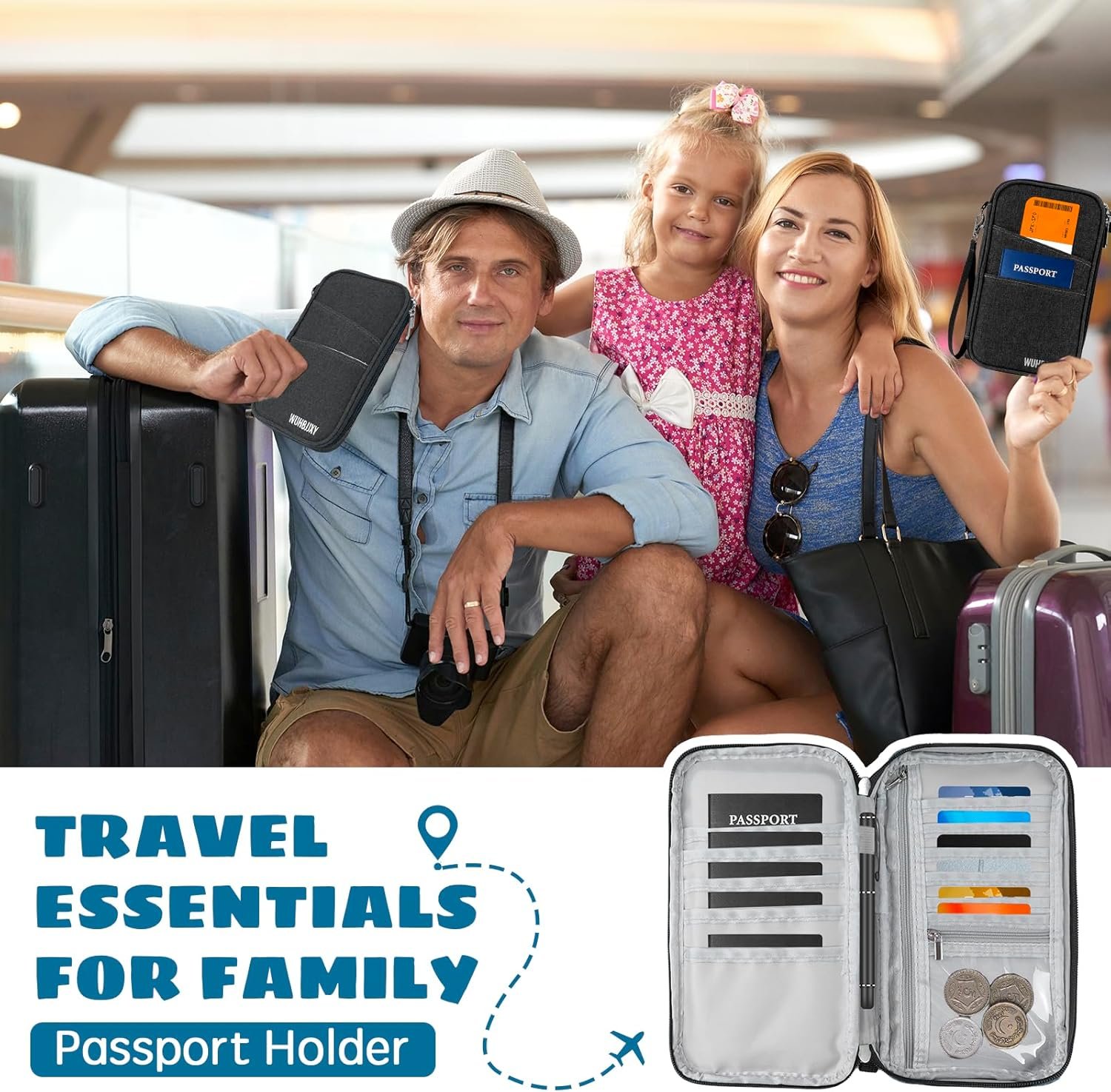 RFID Family Passport Holder, Travel Wallet, Travel Document Organizer, Passport Bag,Cheap,Multifunctional.(Black)