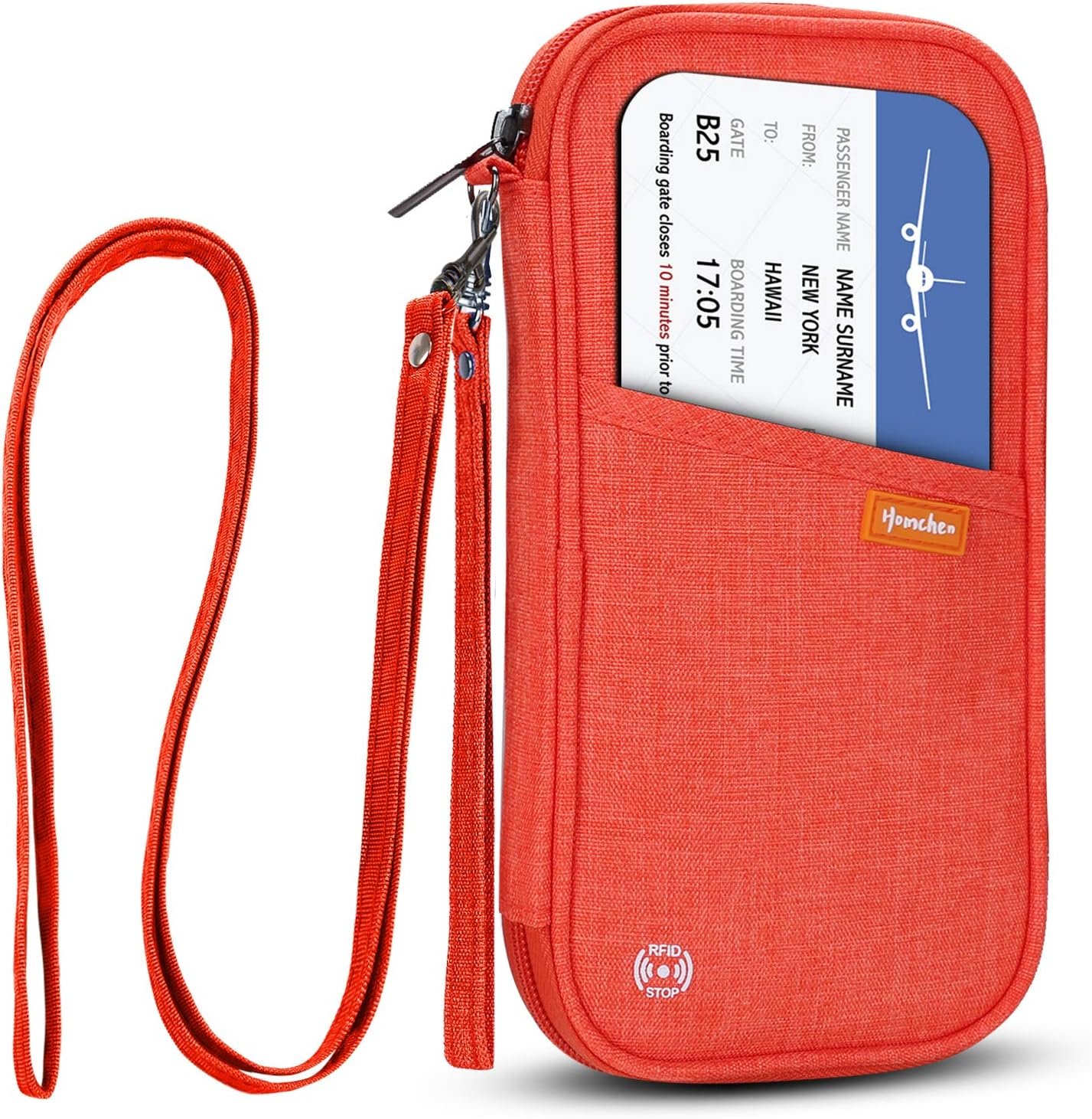 [ SMALL SIZE & BIG CAPACITY ]: The folding size of homchen credit card holder looks slim (size- 9*5.1*1.2 inch), but offer big capacity to store up to 4-5 passports, 9 card slots, 1 keychain, several business cards, coins, pen, boarding documents and so on. It is a perfect size for family travelling.