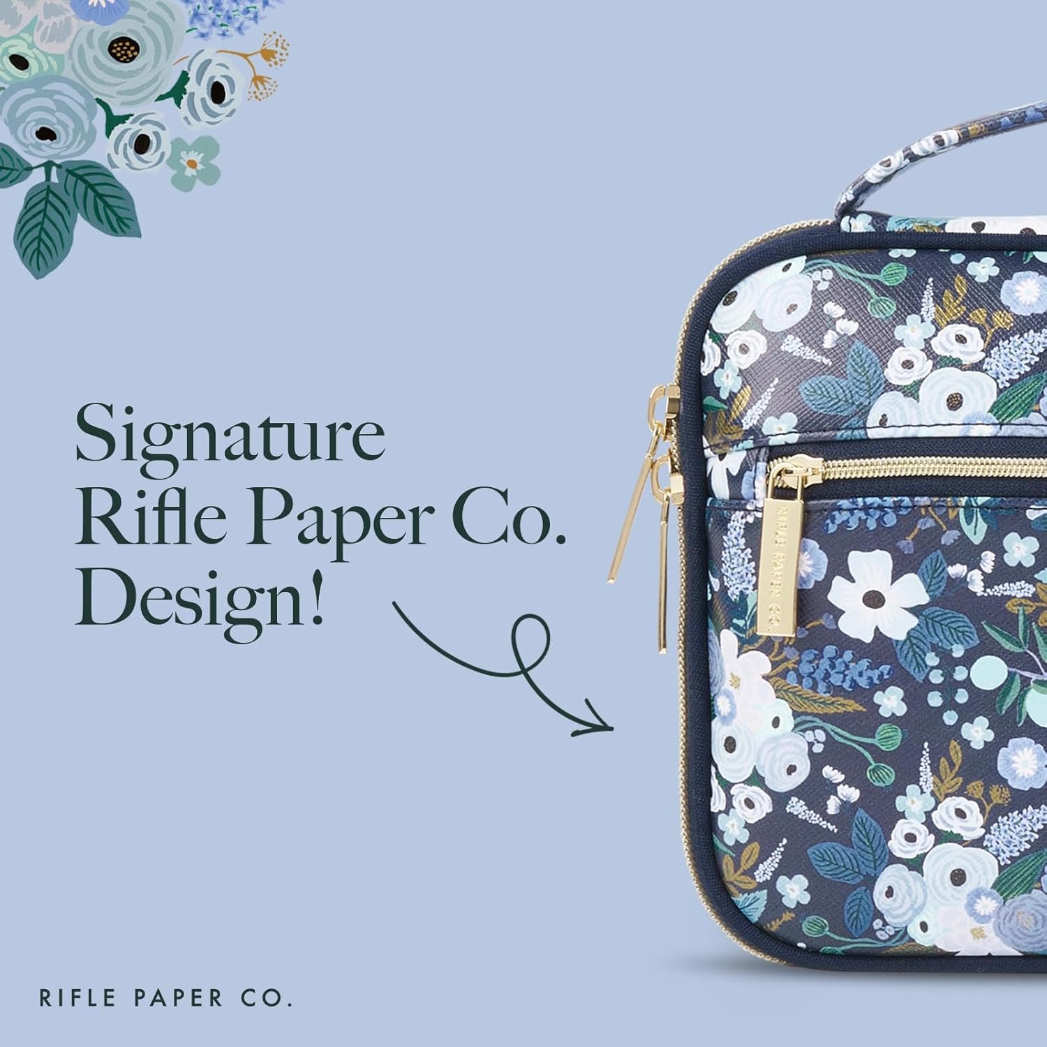 Package Contents: 1 Unit of Rifle Paper Co. Travel Tech Organizer – Garden Party Blue; 1-Year Warranty