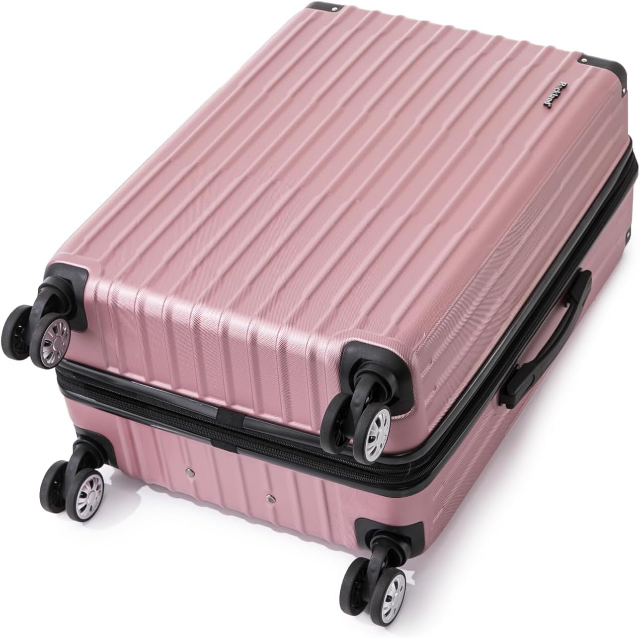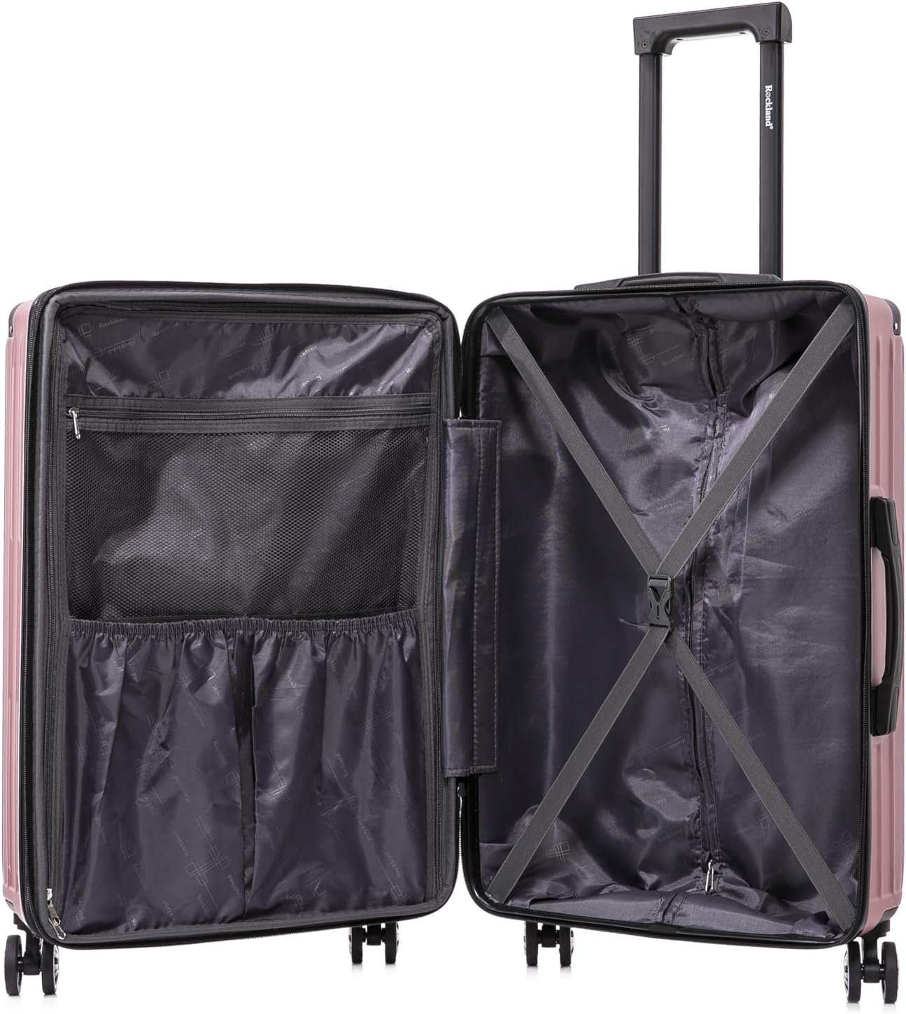This 3 piece set includes a 20″ ABS Spinner, a 24″ ABS spinner, and a coordinating 14″ poyester shoulder tote bag. The major benefits of this material – it is extremely lightweight, it is durable, and protects the contents of your luggage. Four multi directional spinner wheels rotate 360 degrees for easy maneuverability. This luggage allows you to pack more while avoiding the excess weight surcharges imposed by most airlines. • Multi-directional spinner wheels for easy maneuverability • Modern internal chrome telescoping handle with push button handle. • Interior mesh and zip pocket and elastic pocket * 5 year warranty * 20″X13″x9″ weighs 6.5 lbs , 24″x16″ x 10″ weighs 9 lbs, & 14″ Carry on tote measures 14″L x 5.5″W x 11.5″H weighs 1 lb.