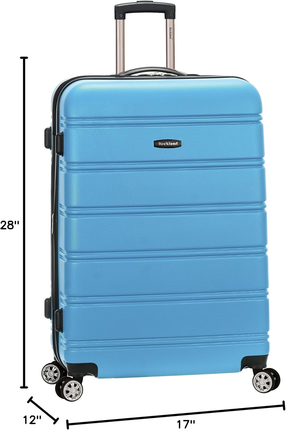This 28″ upright luggage is made of ABS. This material is lightweight, durable, and protects the contents of your luggage. Multi directional spinner wheels rotate 360 degrees for easy maneuverability. This luggage allows you to pack more while avoiding the excess weight surcharges imposed by most airlines. Expandable multi-directional spinner wheels for easy maneuverability modern internal chrome telescoping handle with push button handle. Interior mesh and zip pocket and elastic pocket. 5 year . 28″x17″x12″ weighs 10 lbs.
