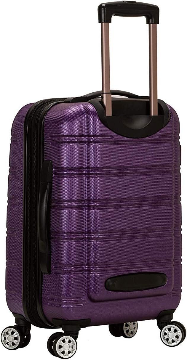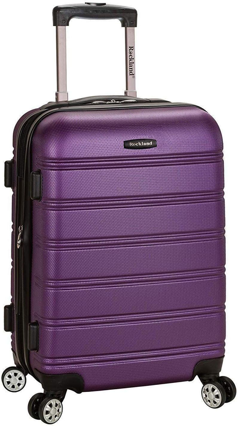 This carryon is made of abs. The major benefits of this material – it is extremely lightweight, it is durable, and protects the contents of your luggage. Four multi directional spinner wheels rotate 360 degrees for easy maneuverability. This luggage allows you to pack more while avoiding the excess weight surcharges imposed by most airlines. Multi-directional spinner wheels for easy maneuverability. Modern internal chrome telescoping handle with push button handle. Interior mesh and zip pocket and elastic pocket. Measures 20 inchx13 inchx9 inch and weighs 7.5 lbs. Wheel design may vary between black and silver wheels
