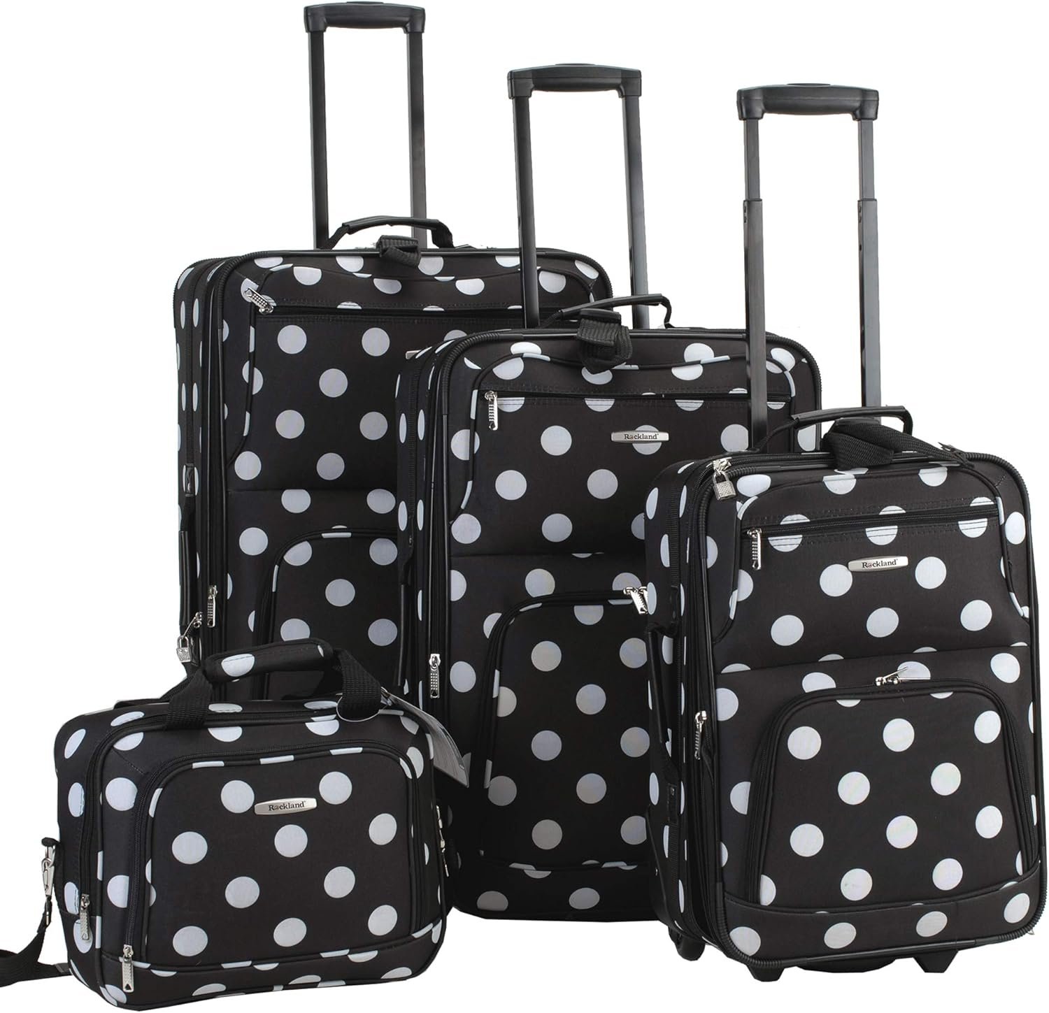Rockland Polka Softside Upright Luggage Set, Expandable, Lightweight, Black Dot, 4-Piece (14/19/24/28)